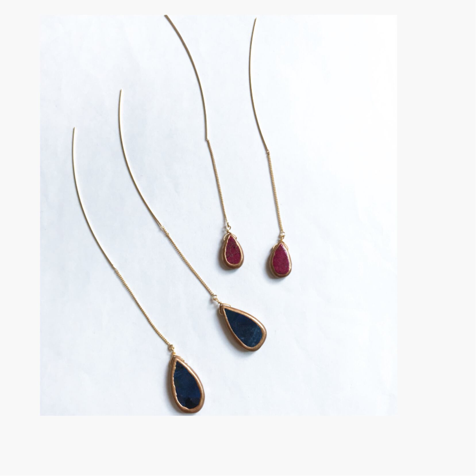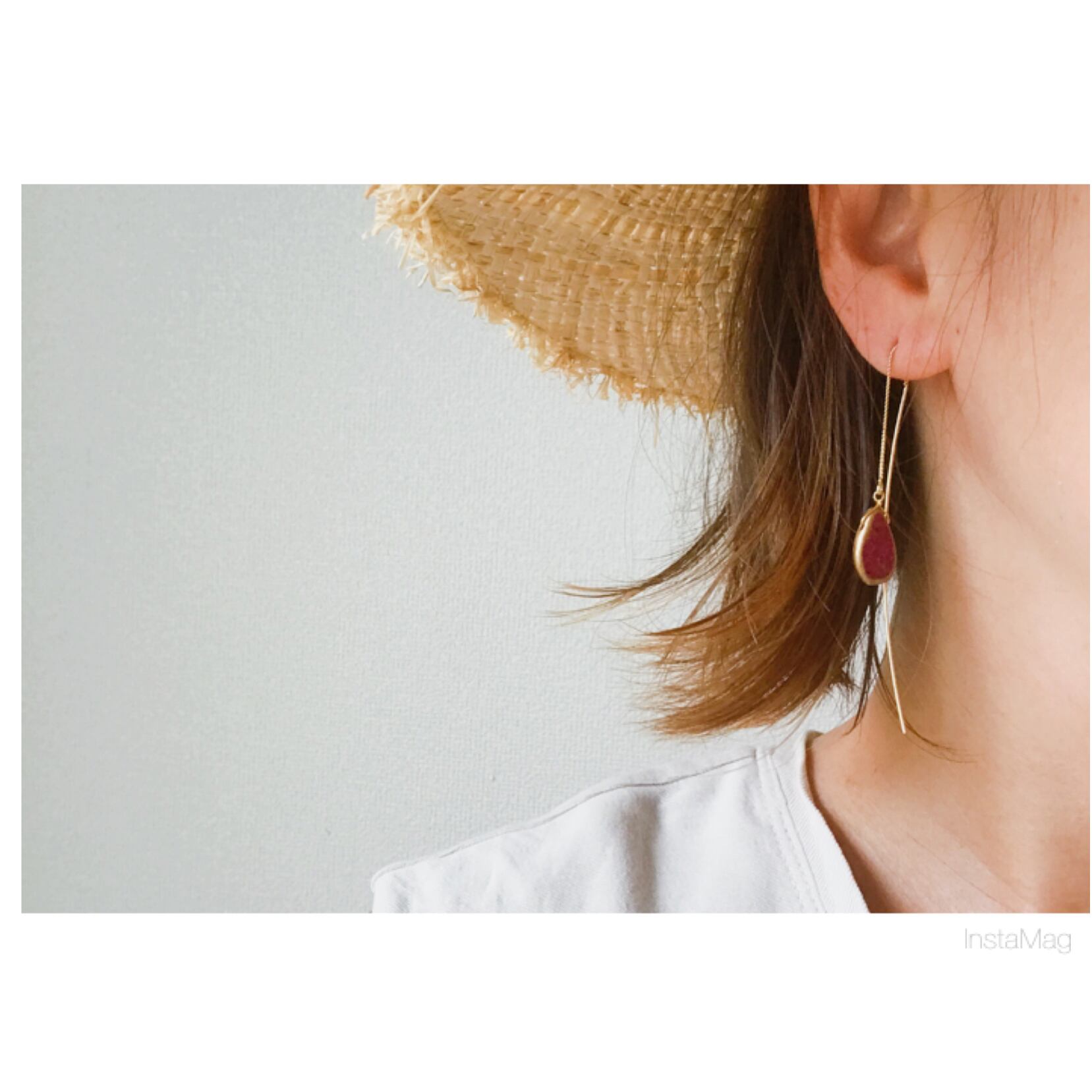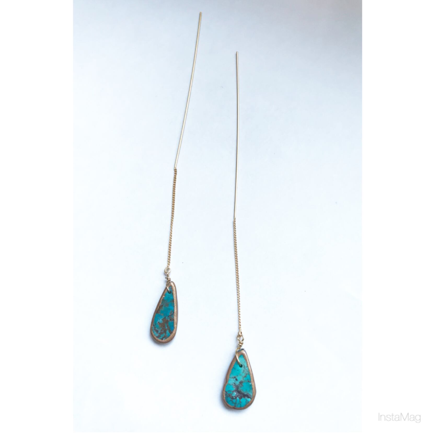 ドロップ形のターコイズのシンプルで大人ぽいアメリカンピアスです。
