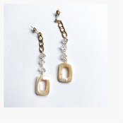 キラキラの輝きが綺麗なクリスタルとスクエアのシェルを合わせたピアス、イヤリングです。