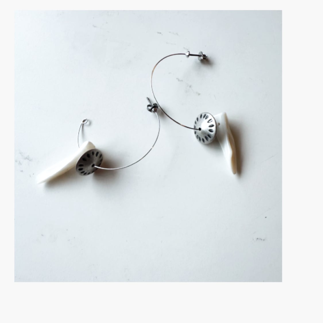 シェルとヴィンテージ風のシルバービーズを合わせたピアス。