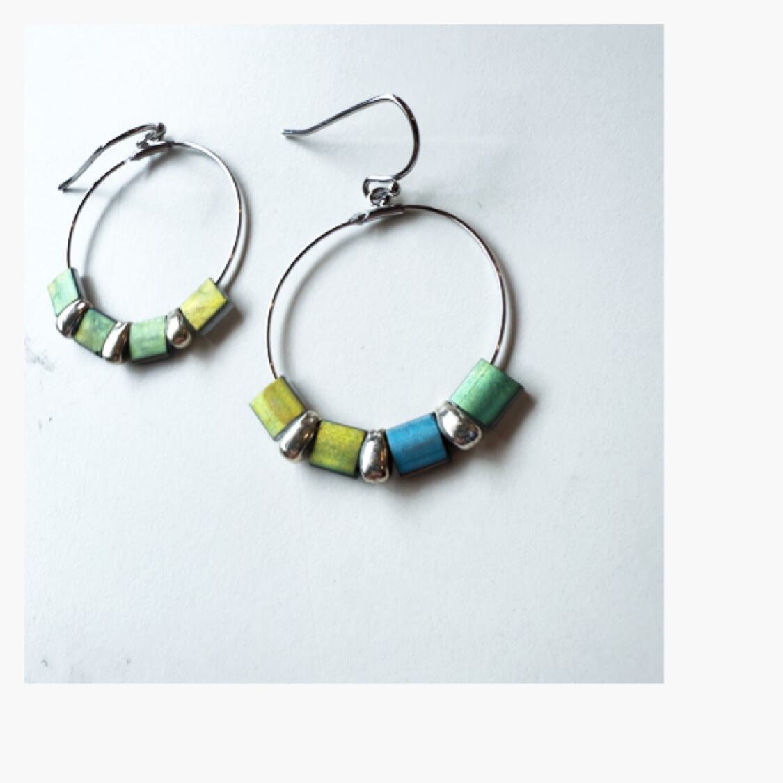 珍しいカラーのビーズをメインにしたフープピアス、イヤリングです!
