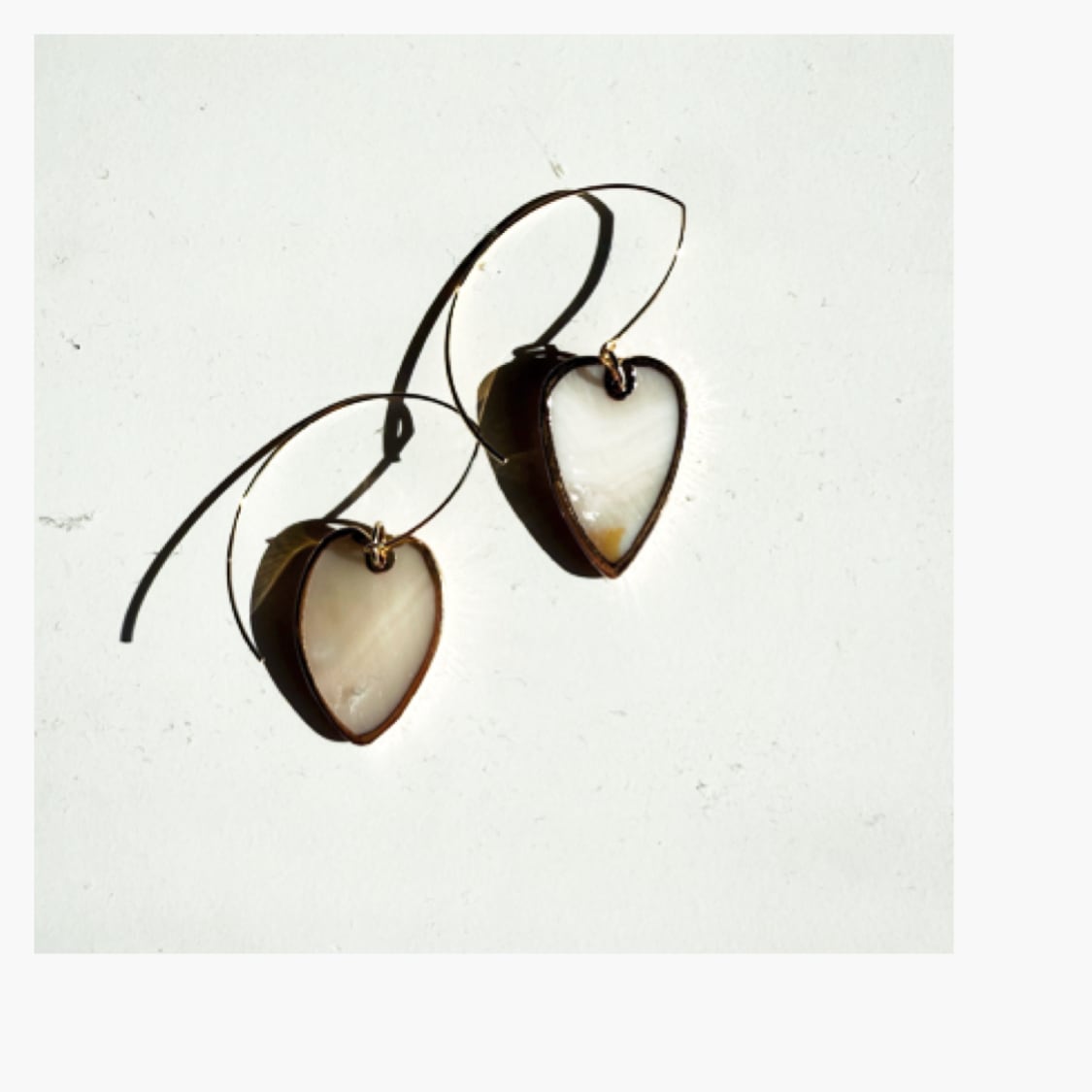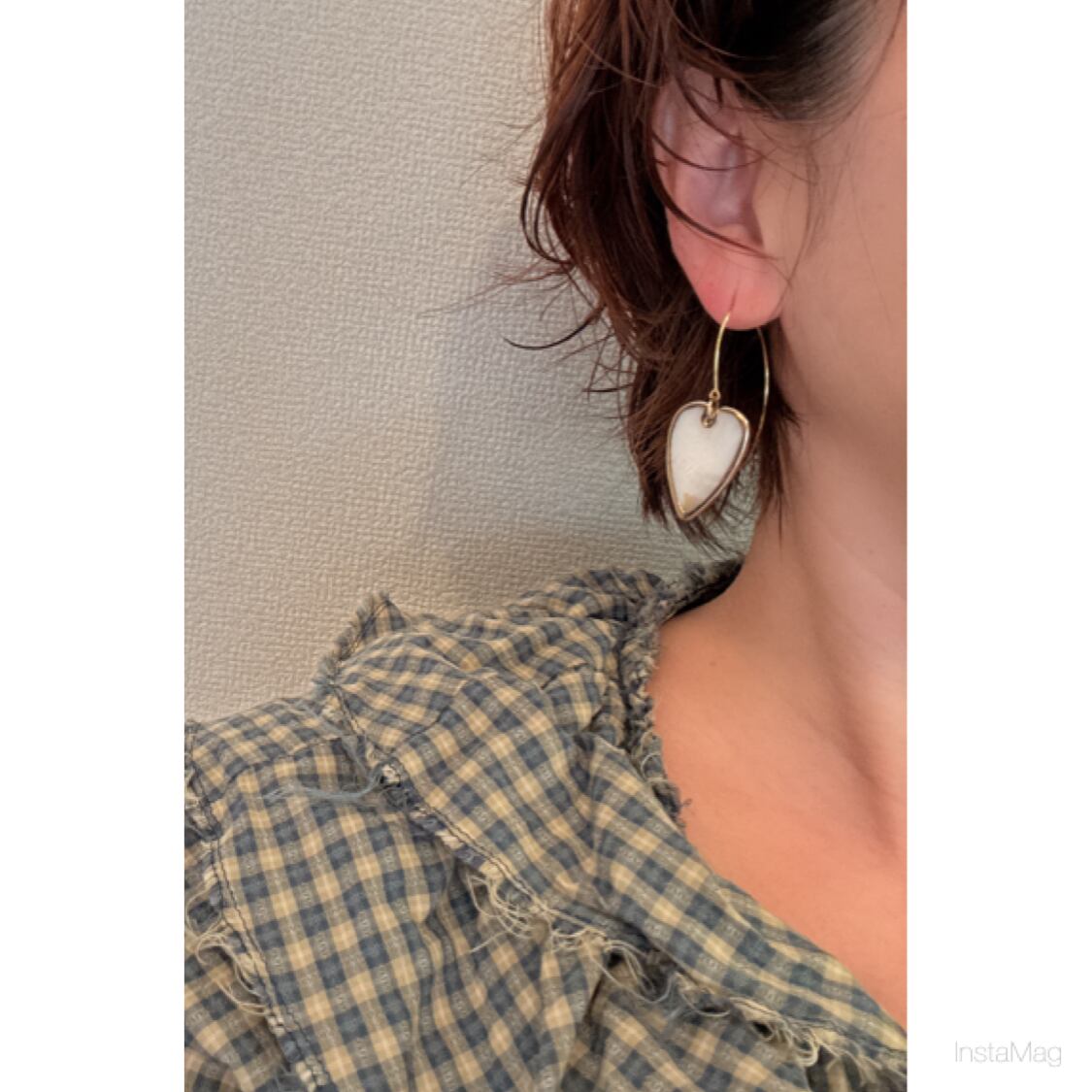 ちょっと長めのゴールドとシェルミックスのハートがかわいいピアスです!