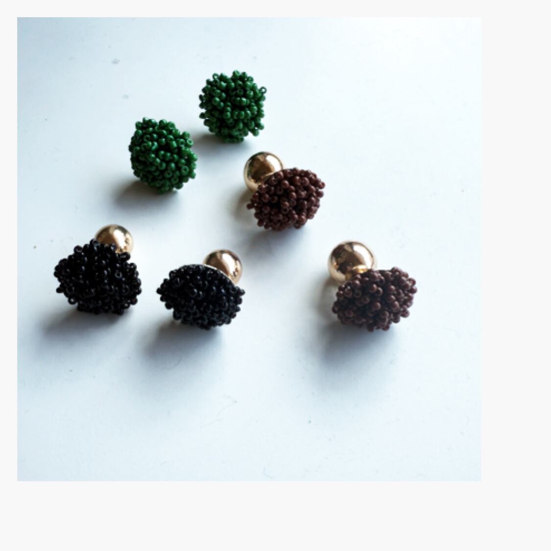 小さなビーズをコロンとしたフォルムにしたピアス。