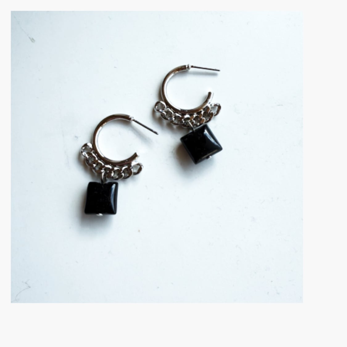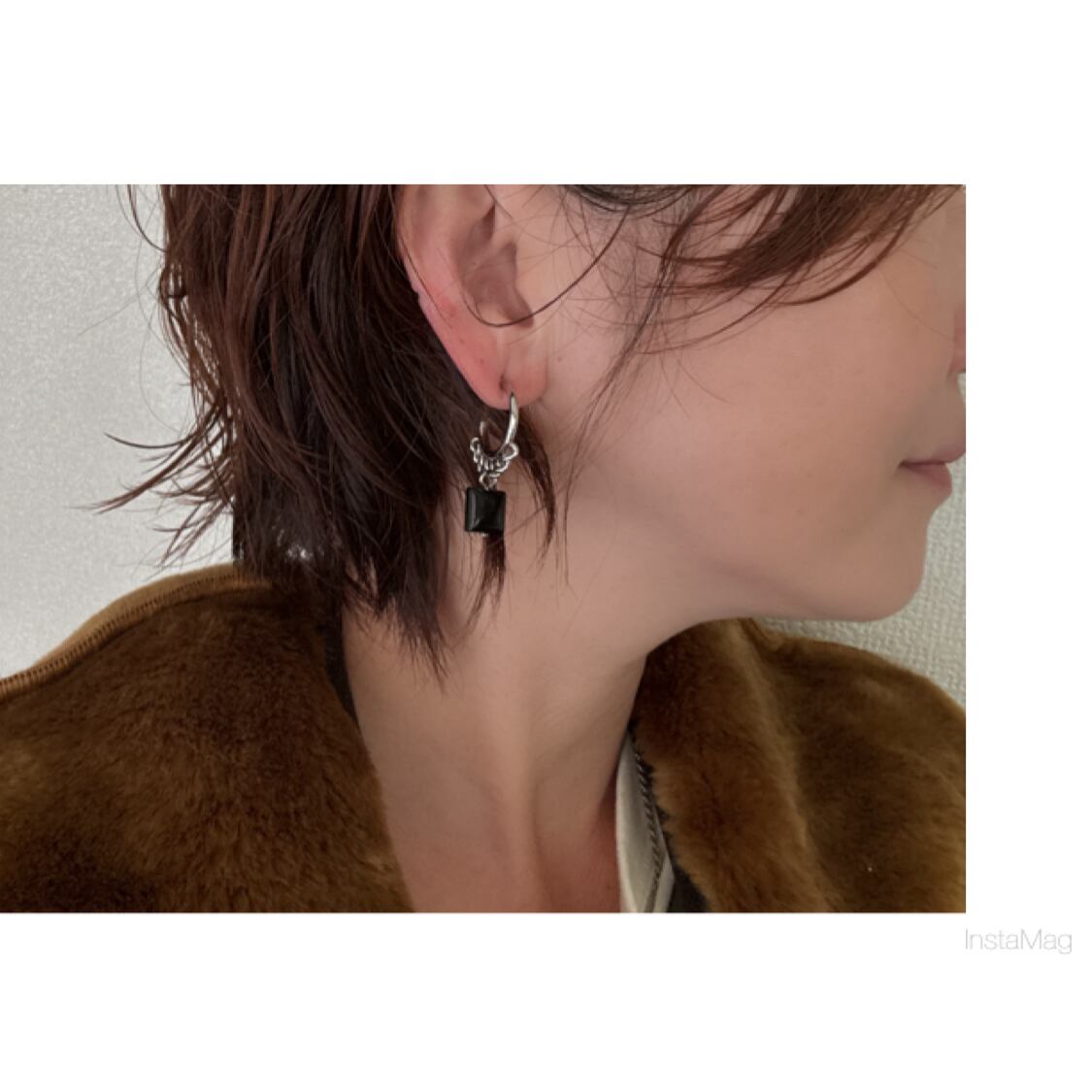 チェーンピアスに四角いオニキスを合わせたシンプルなピアスです。
