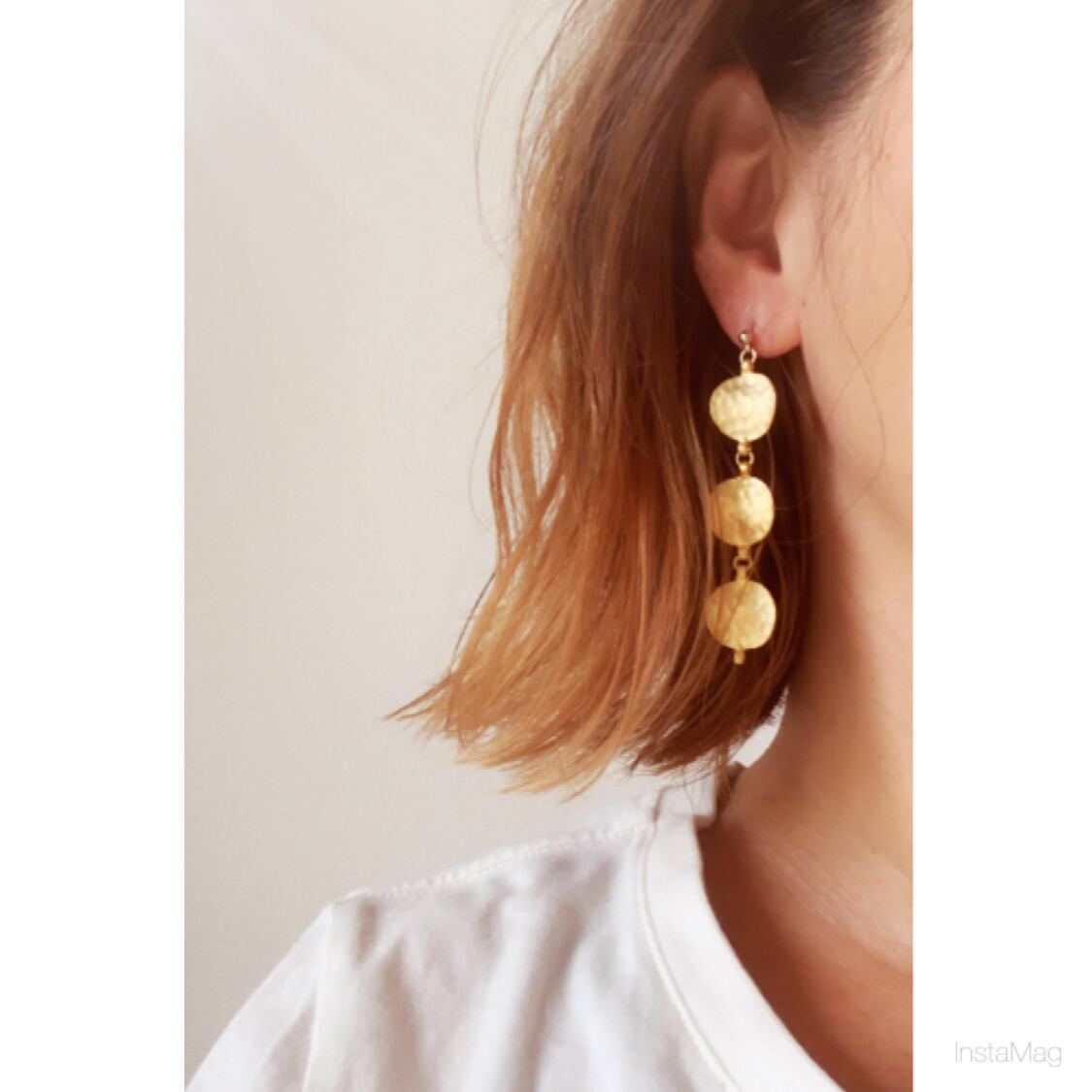 3つ連なったシンプルデザインのピアス、イヤリングです。