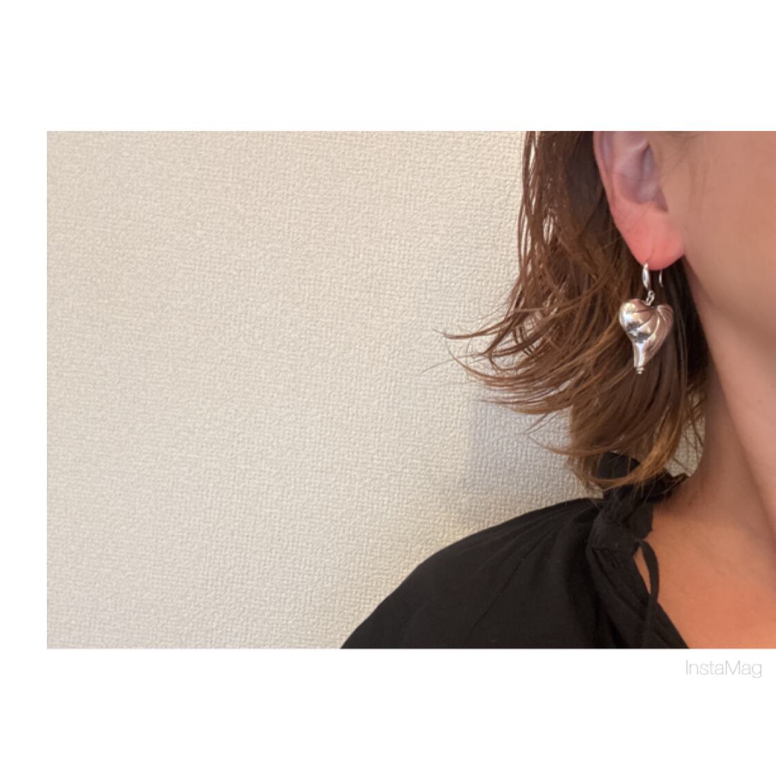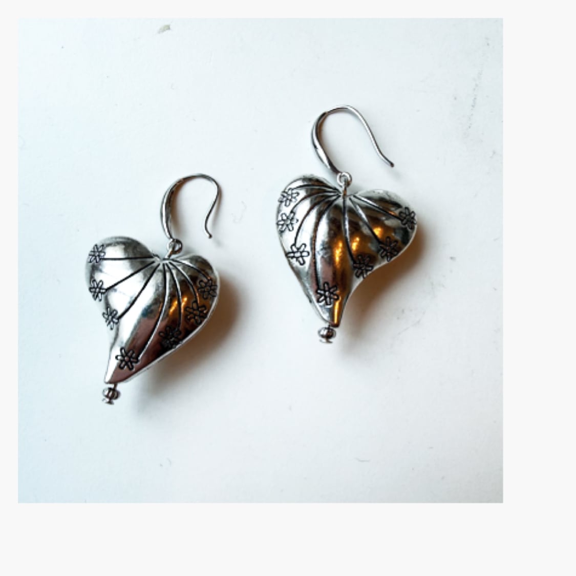 ボヘミアン調のシルバーハートパーツのピアス、イヤリング。