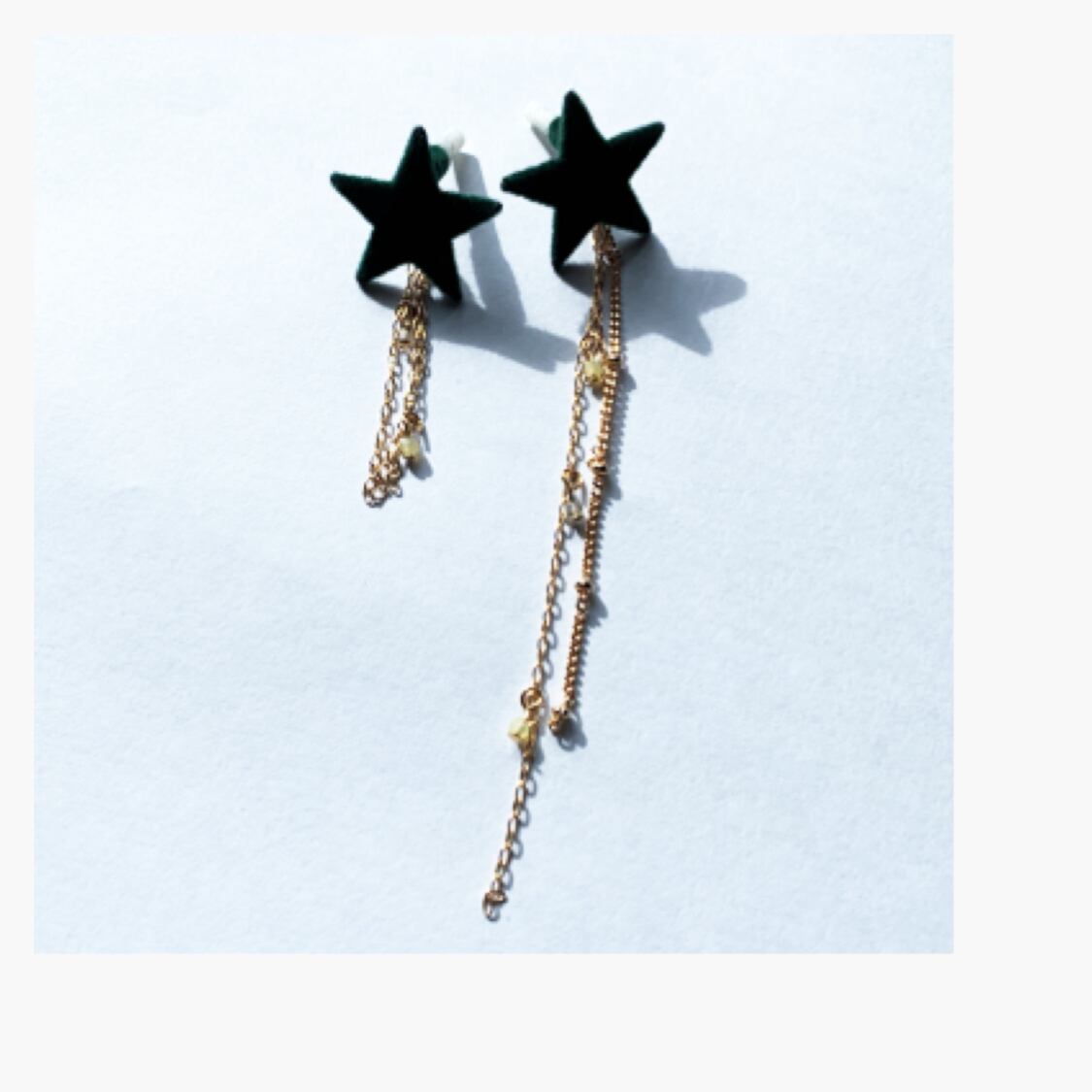 ベルベット素材の星に、左右長さの違うチェーンをジャラッと。