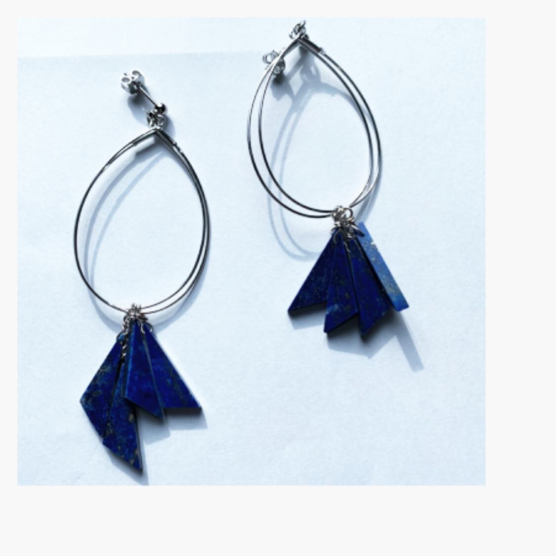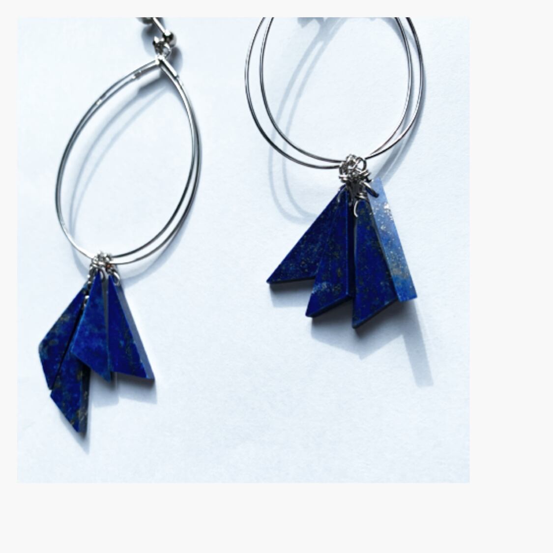 ダブルフープに三角形のラピスラズリをジャラッとボリュームのあるピアス、イヤリングです。