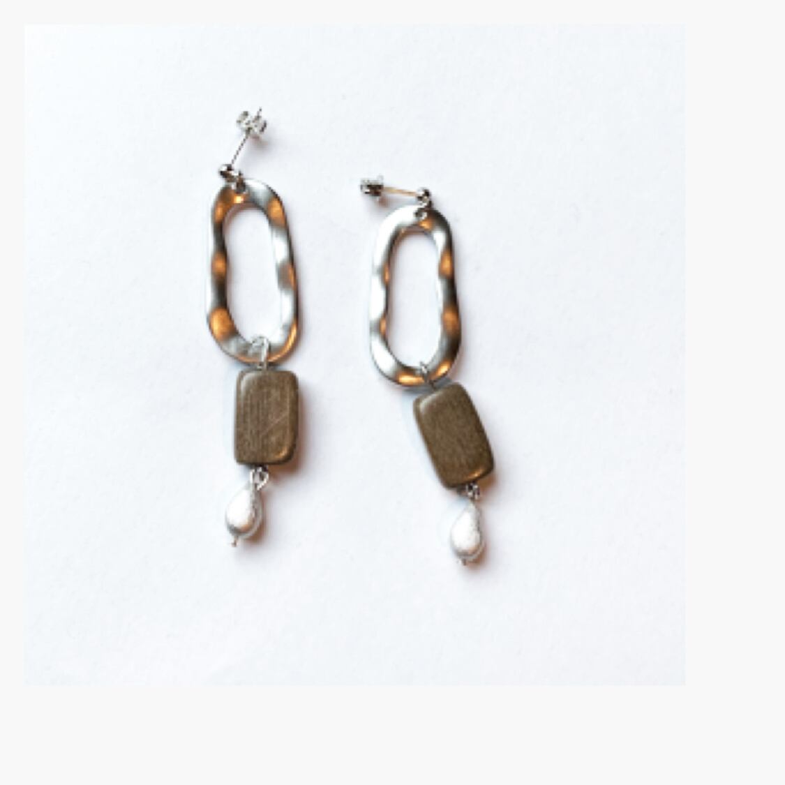 シルバー×ウッドの大人カジュアルなデザインのピアス、イヤリングです。