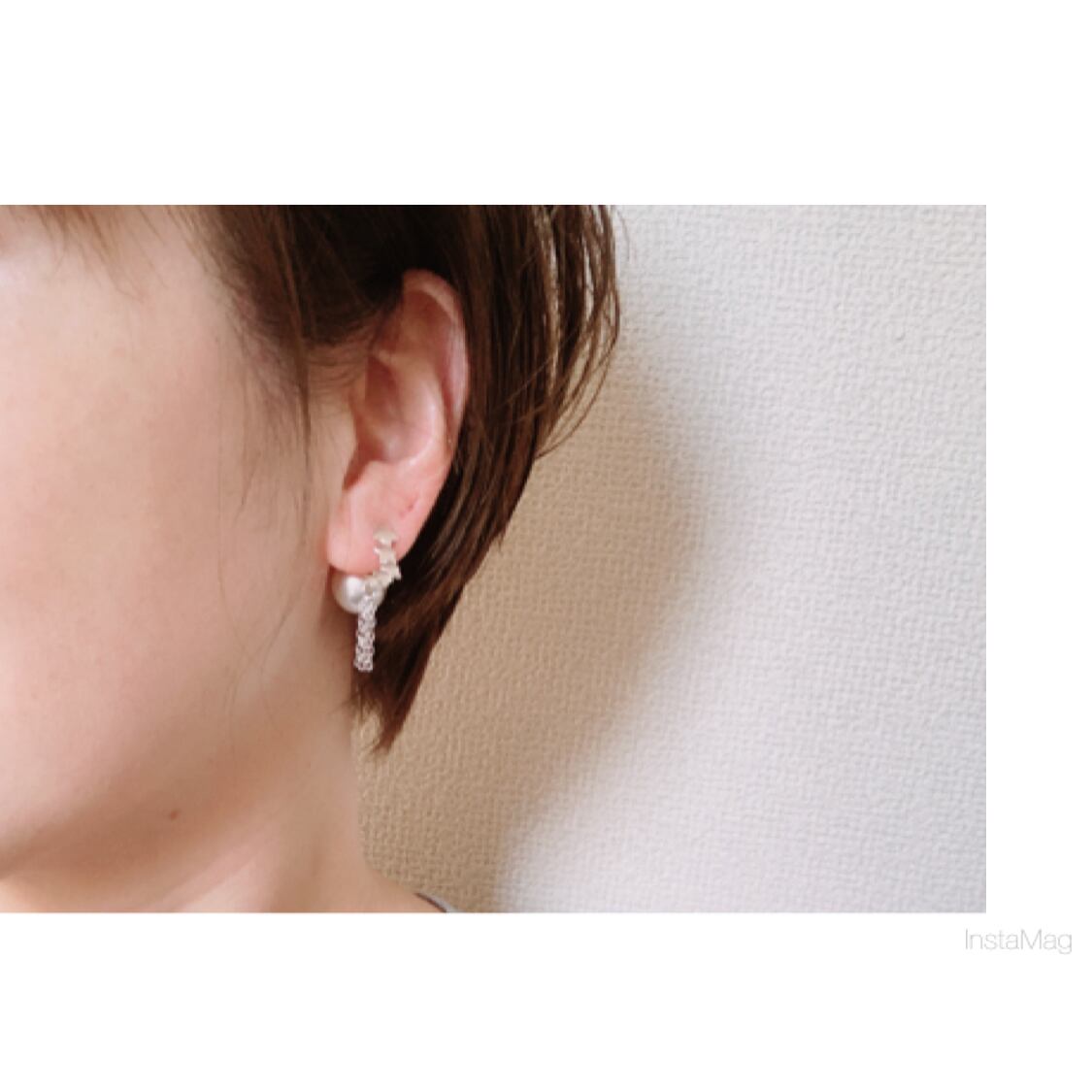 キャッチは大きめなパールで存在感あるピアスに仕上げました!