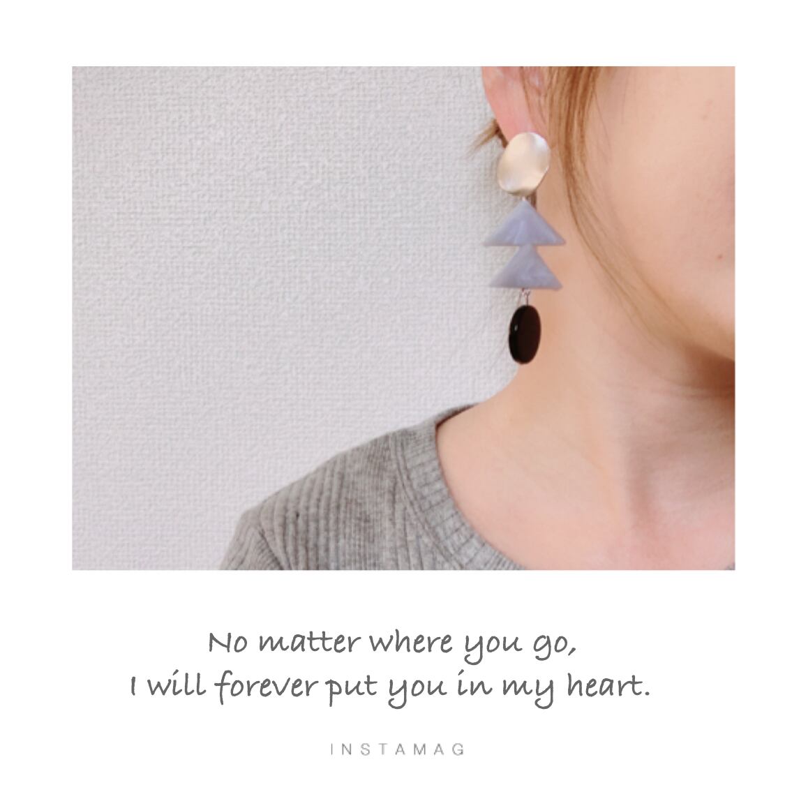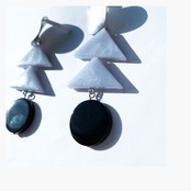 ウネリあるシルバープレートピアスに三角のグレーマーブル色×オニキスの大人色の組み合わせのピアスです。