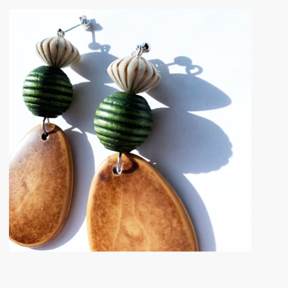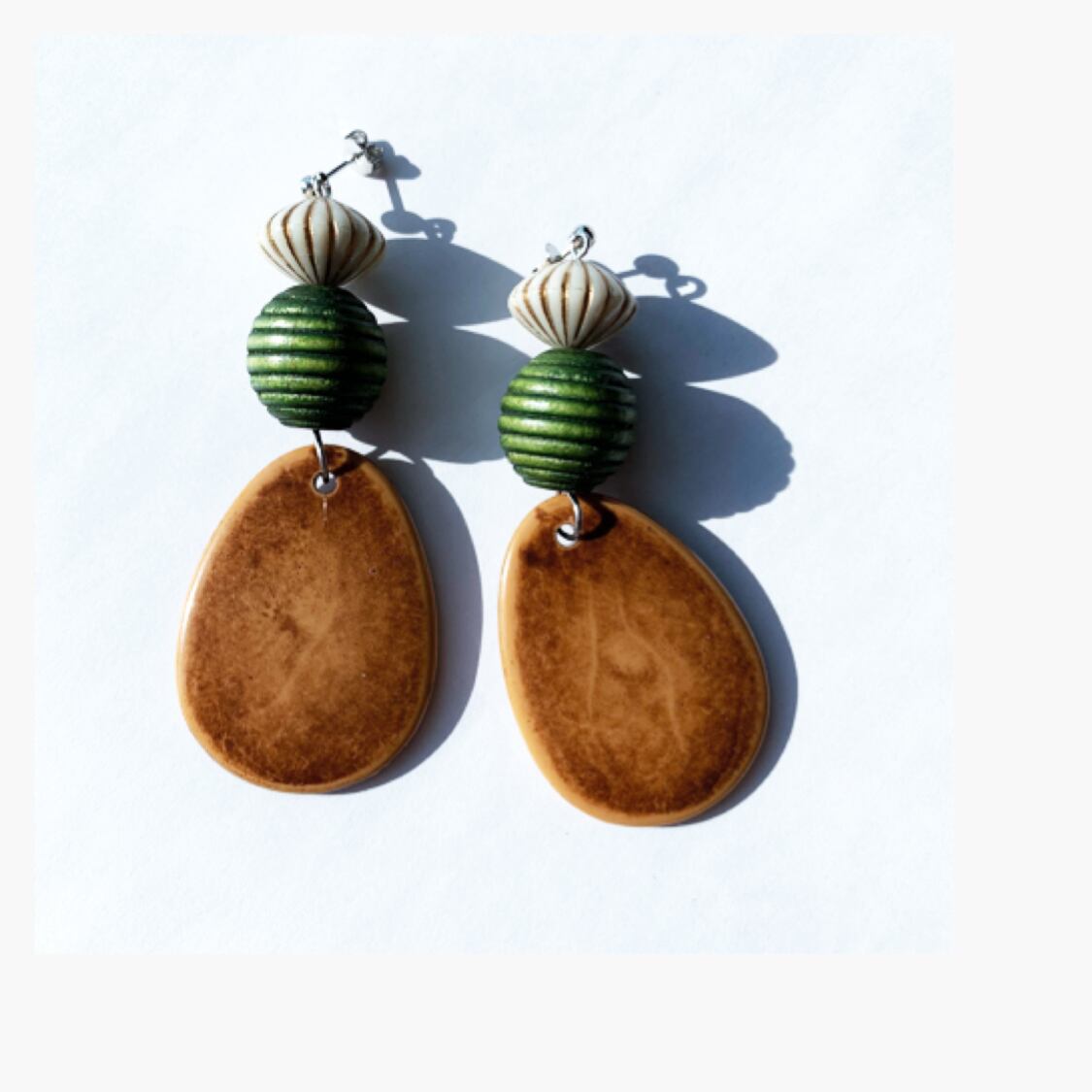 カーキ×ブラウンの合わせやすい色使いのピアス、イヤリングです。