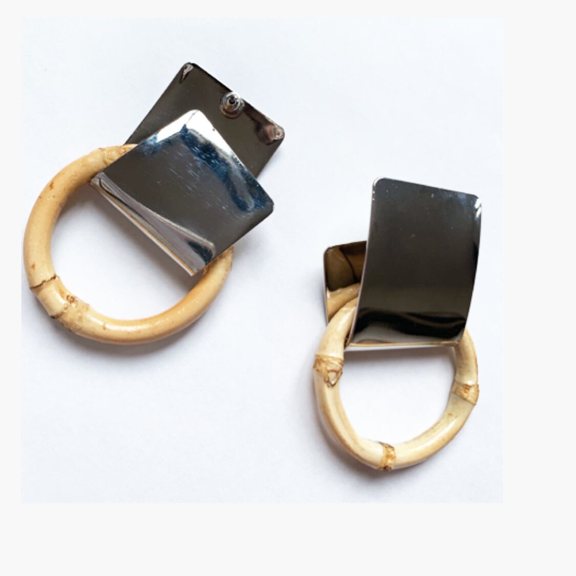 春夏を意識したバンブー素材を使用した大振りなピアスです。