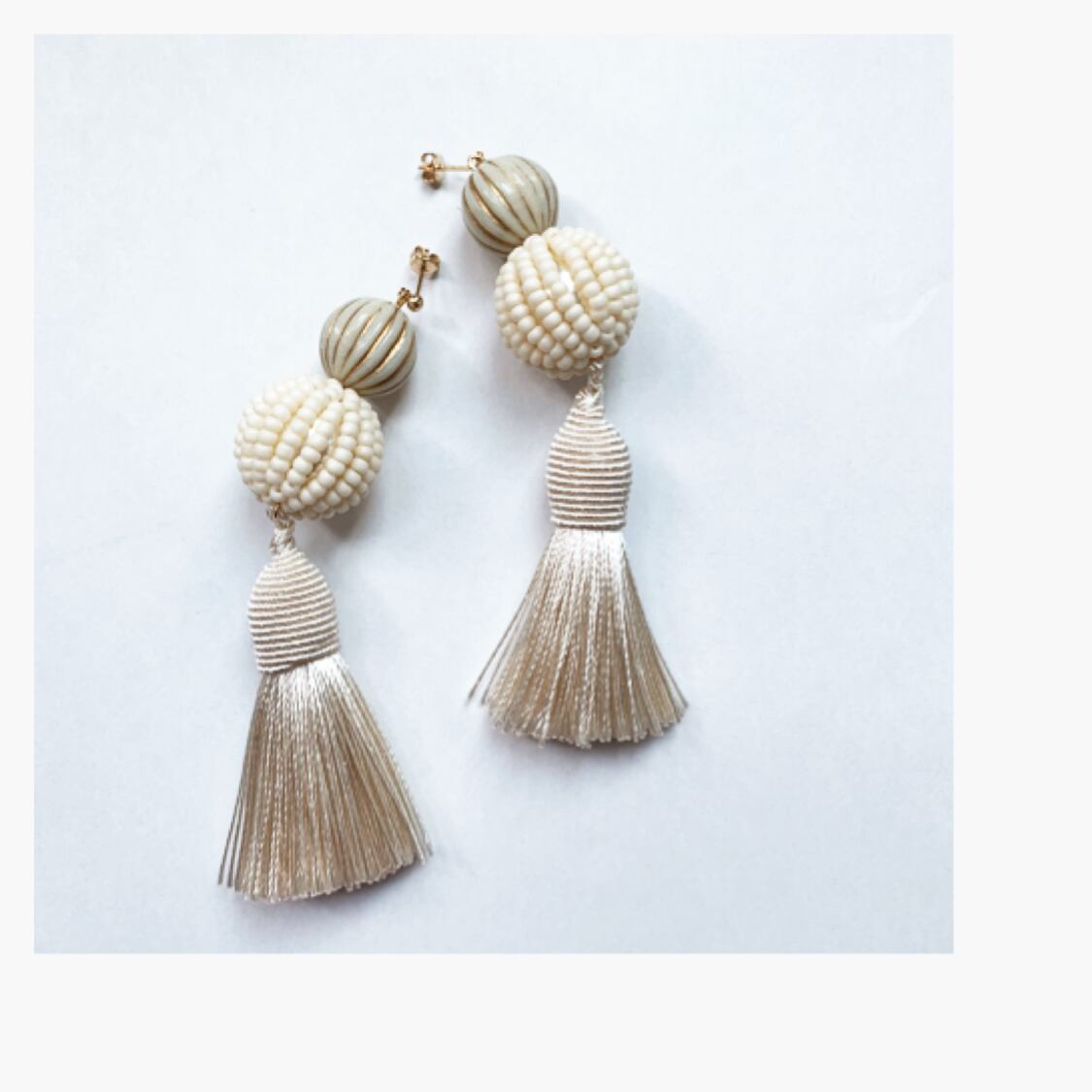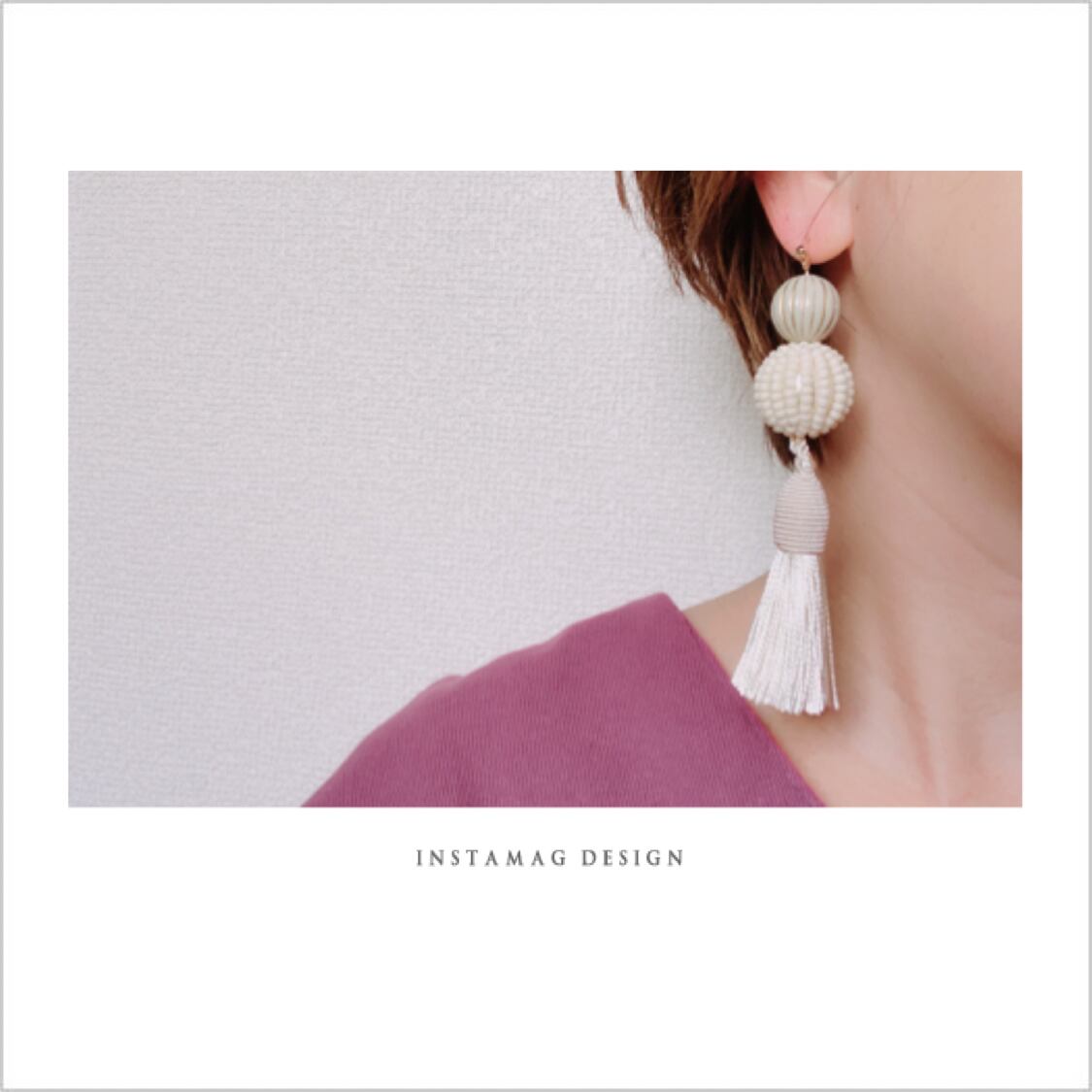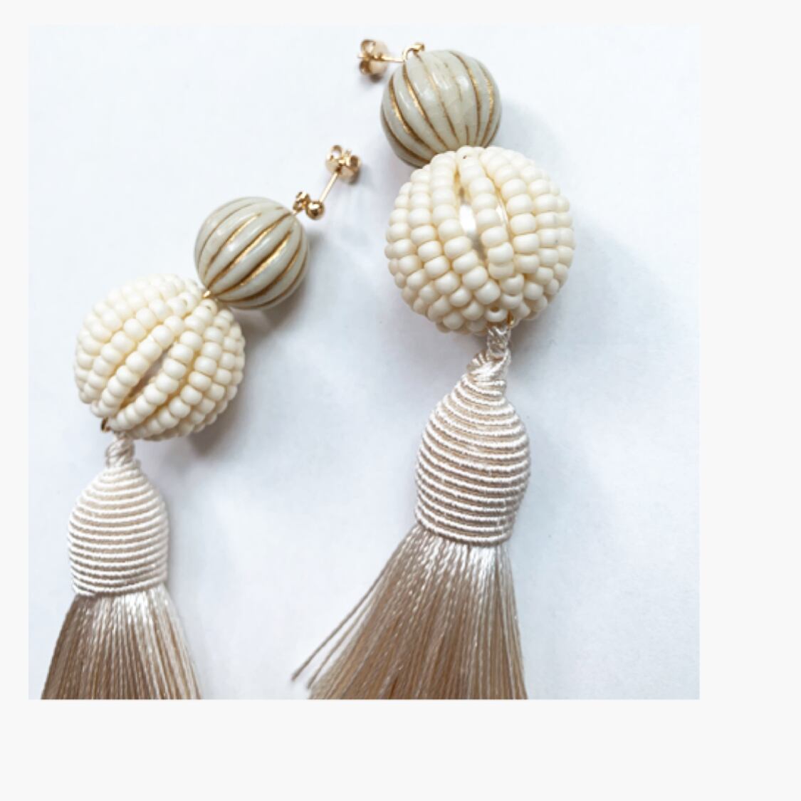 タッセルに目を惹く大振りなビーズを2種類合わせて、春夏らしい、ロングワンピなどにピッタリのお品です!