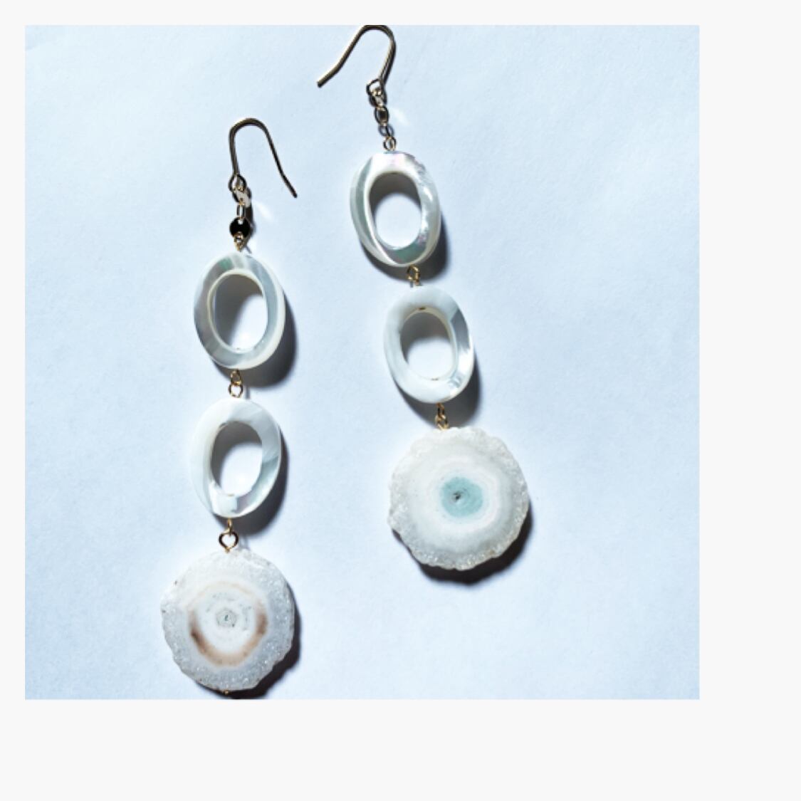 スタラクタイトのスライスをメインにしたホワイト一色のピアス、イヤリングです。