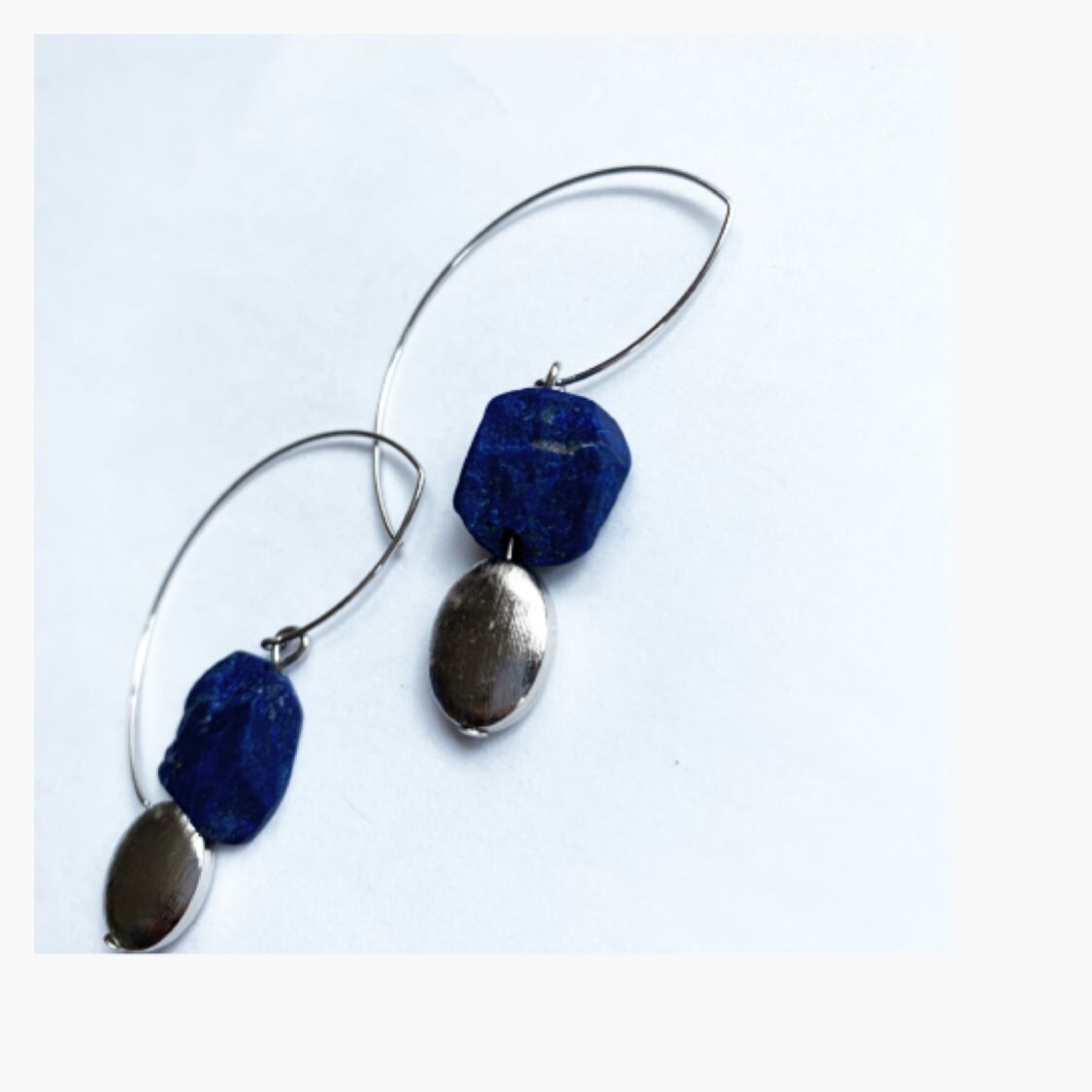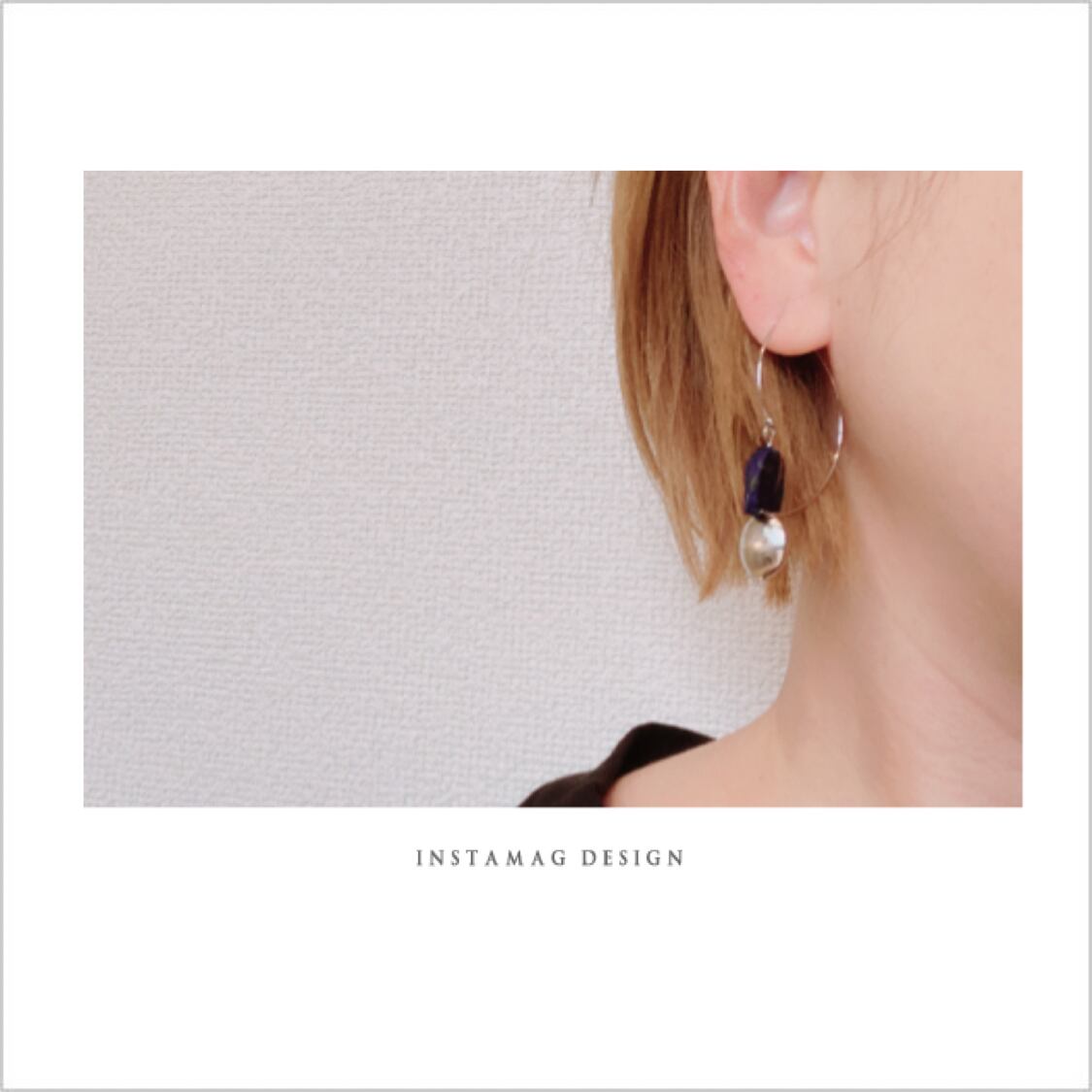 ラピスラズリ原石の深い濃紺が主役のピアスです。
