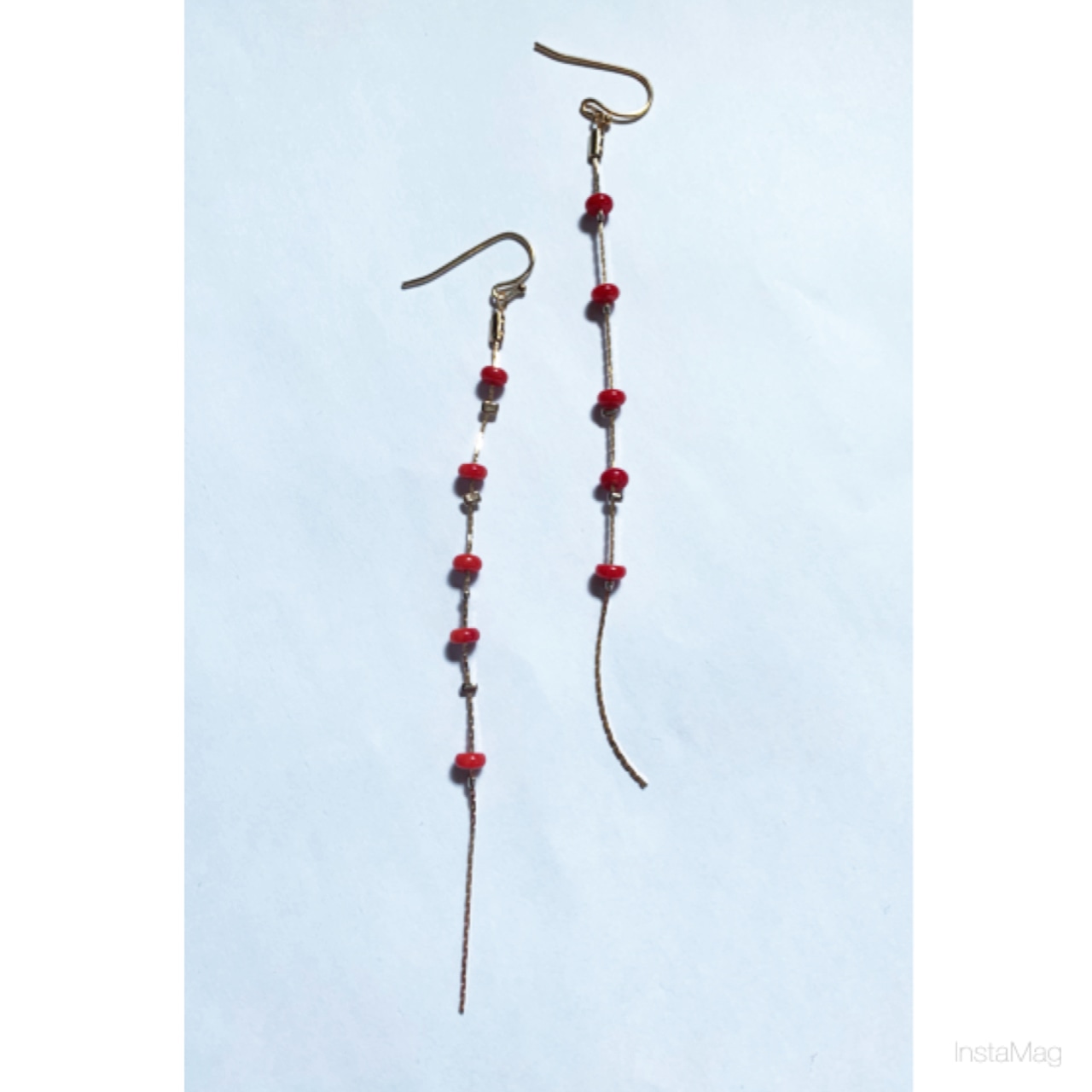 華奢なチェーンに天然石をあしらったラインピアス、イヤリングです。