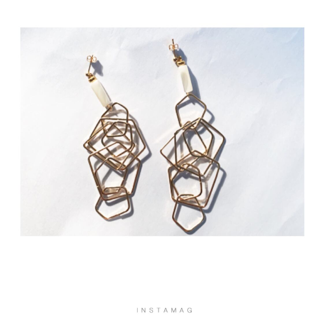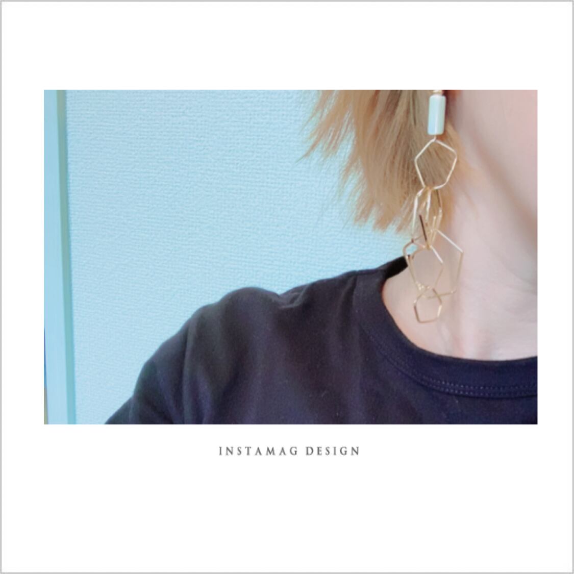 歪な5角形のパーツが連なる個性派ピアス、イヤリングです。