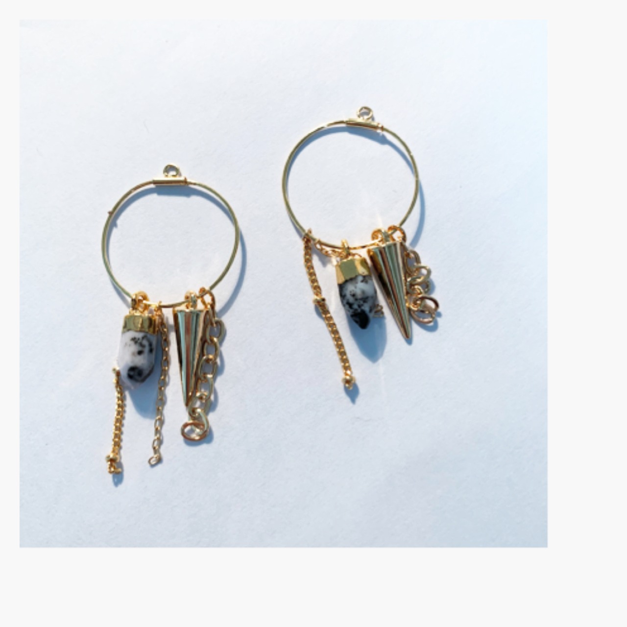 天然石とスタッズ、ジャラッとチェーンを合わせたちょっとクセのあるお品です!