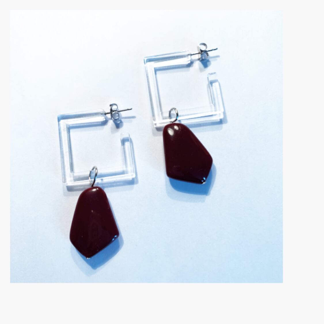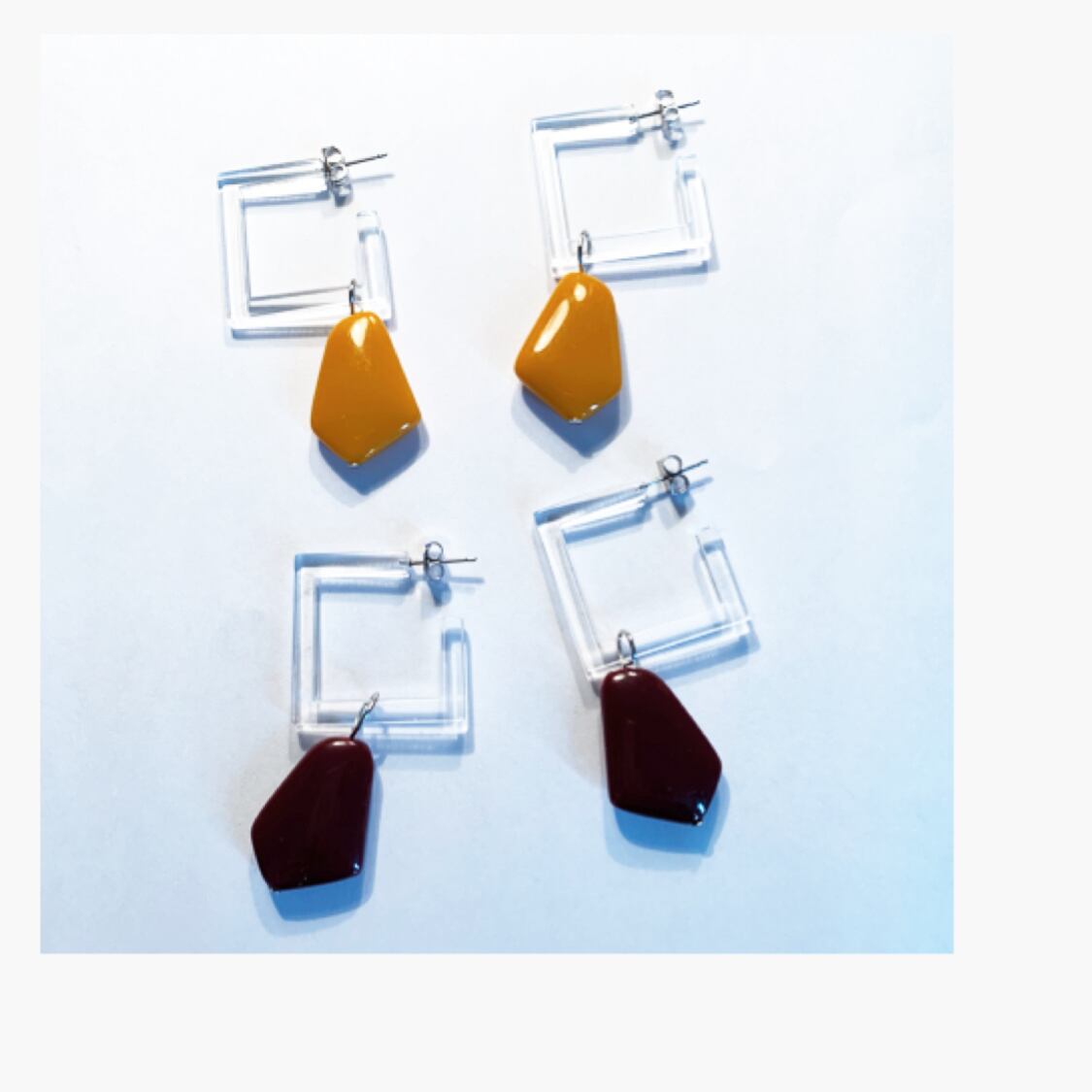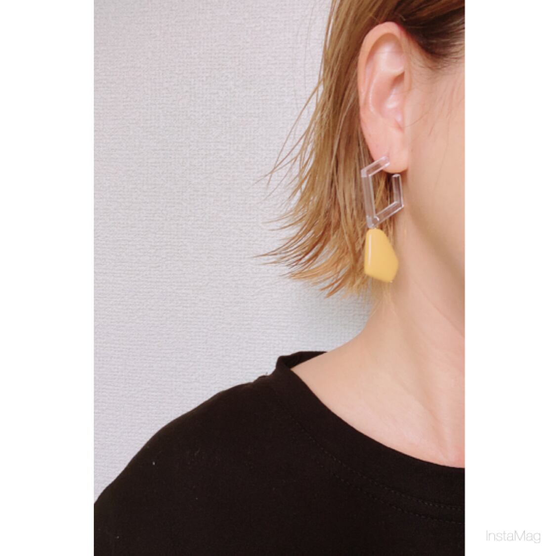 四角のクリアピアスだけでも可愛いですが、コロンとした素材感と色味がとってもステキなビーズを合わせて更にオシャレに!