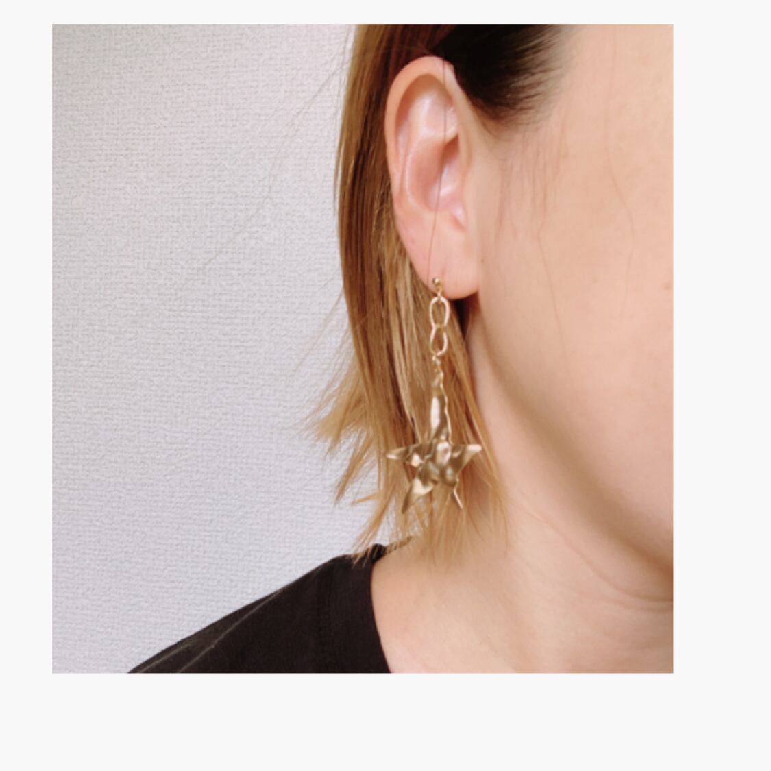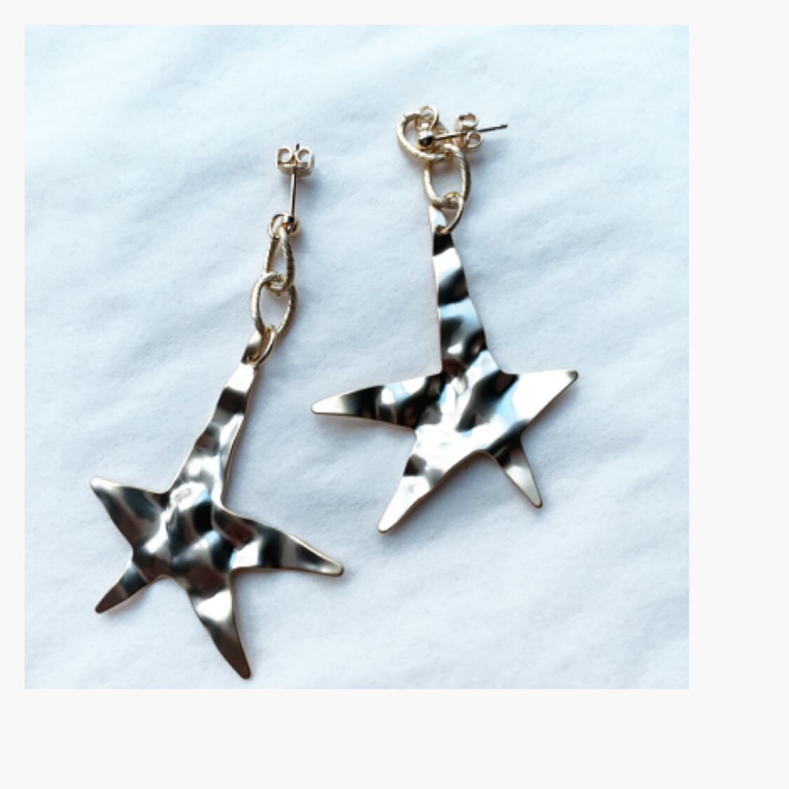 打ちっ放しの個性ある形の星をメインにしたピアス、イヤリングです。