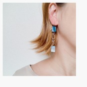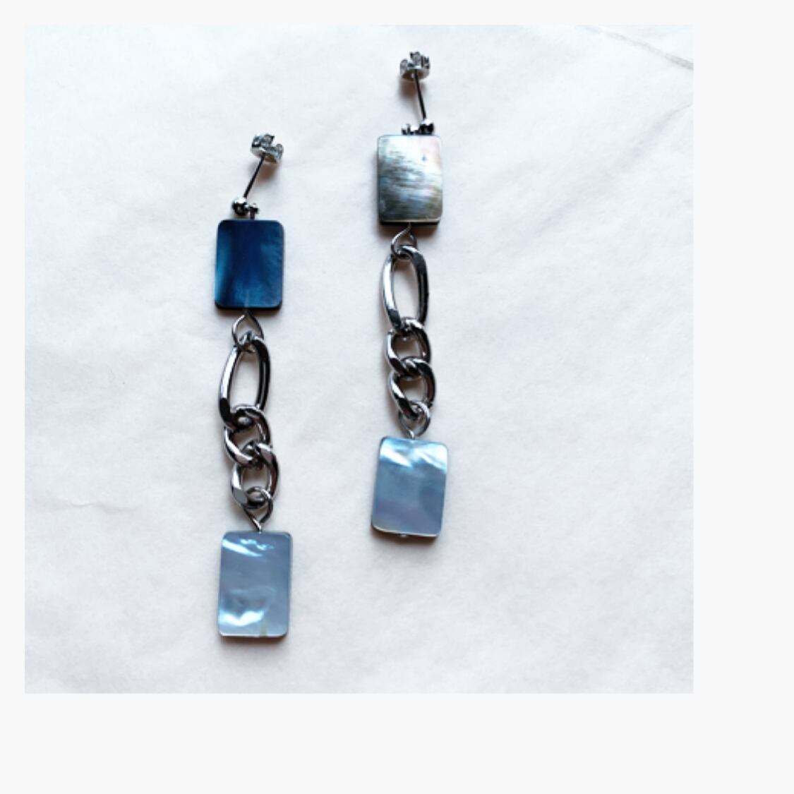 アバロンシェルとシルバーチェーンで、ちょっとハード系なデザインのピアス、イヤリングです。