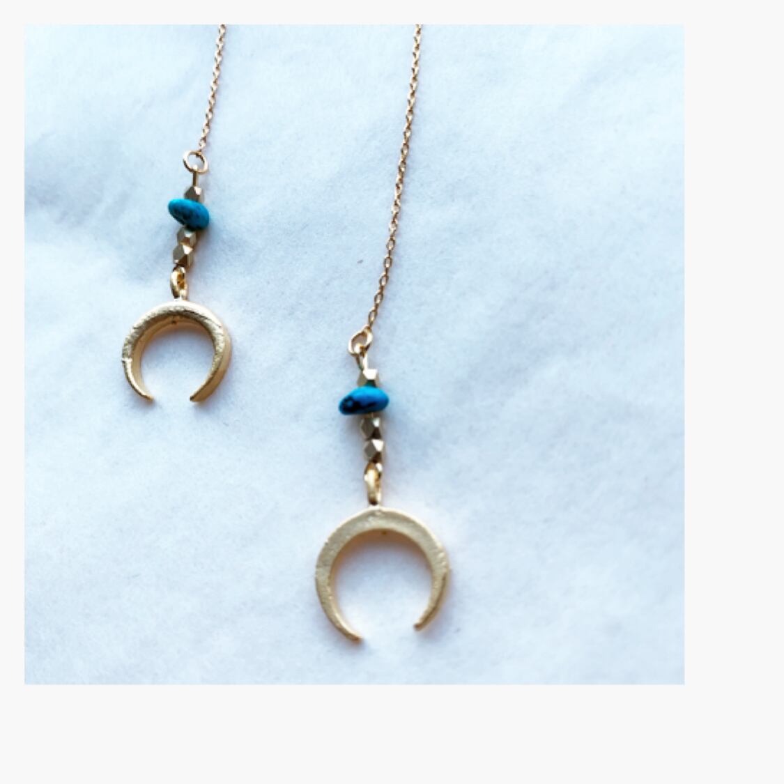 アンティークゴールド色の三日月チャームをメインにゴールドピアスとターコイズを合わせたシンプルで使いやすいピアスです。