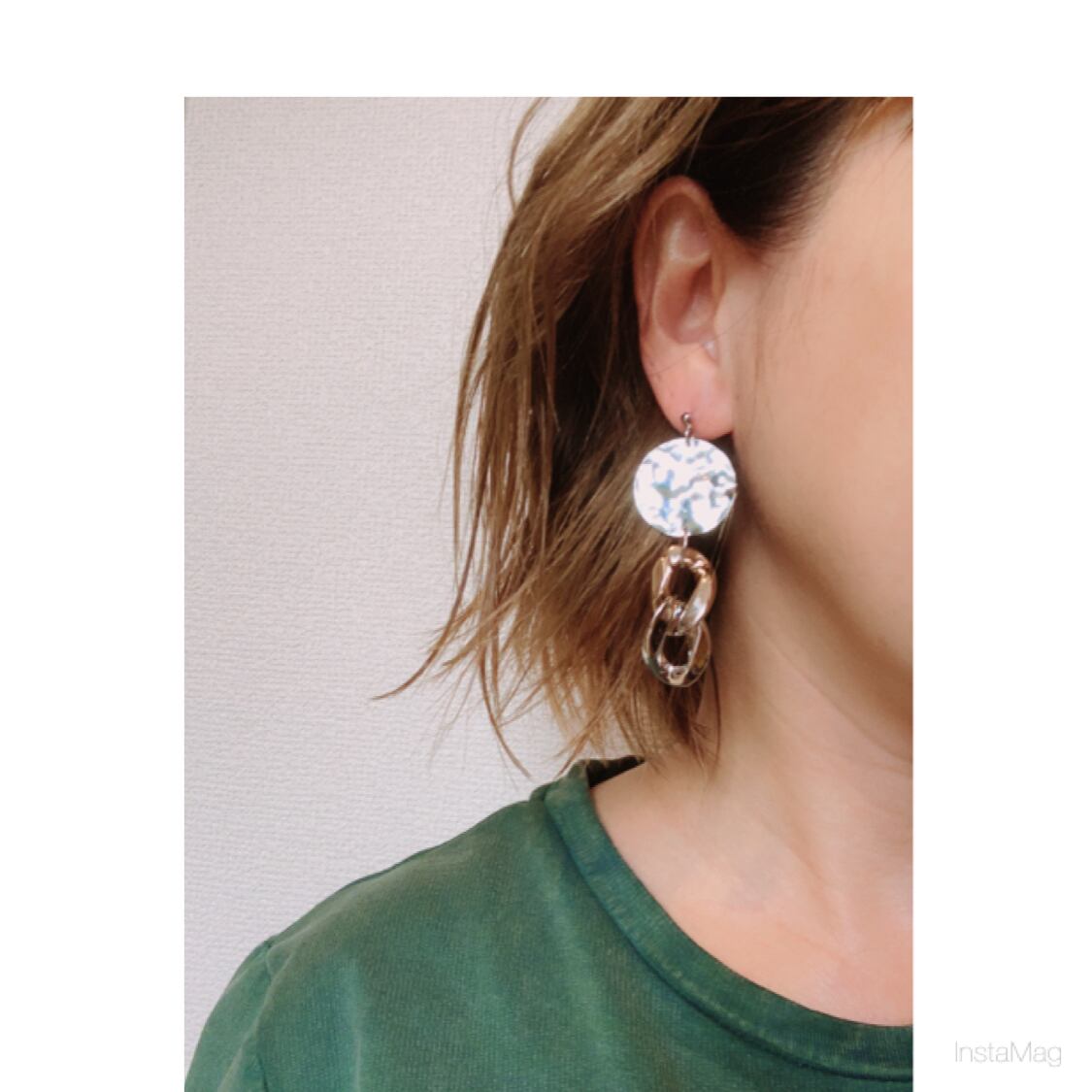 定番デザインの大振りチェーンのピアス、イヤリング。