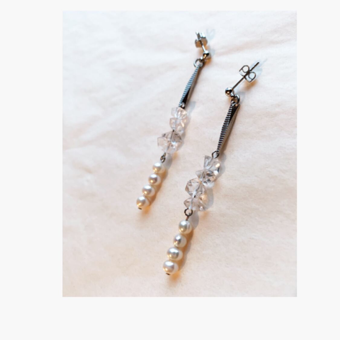 淡水パールとクリスタル、上品な組み合わせなピアス、イヤリング。