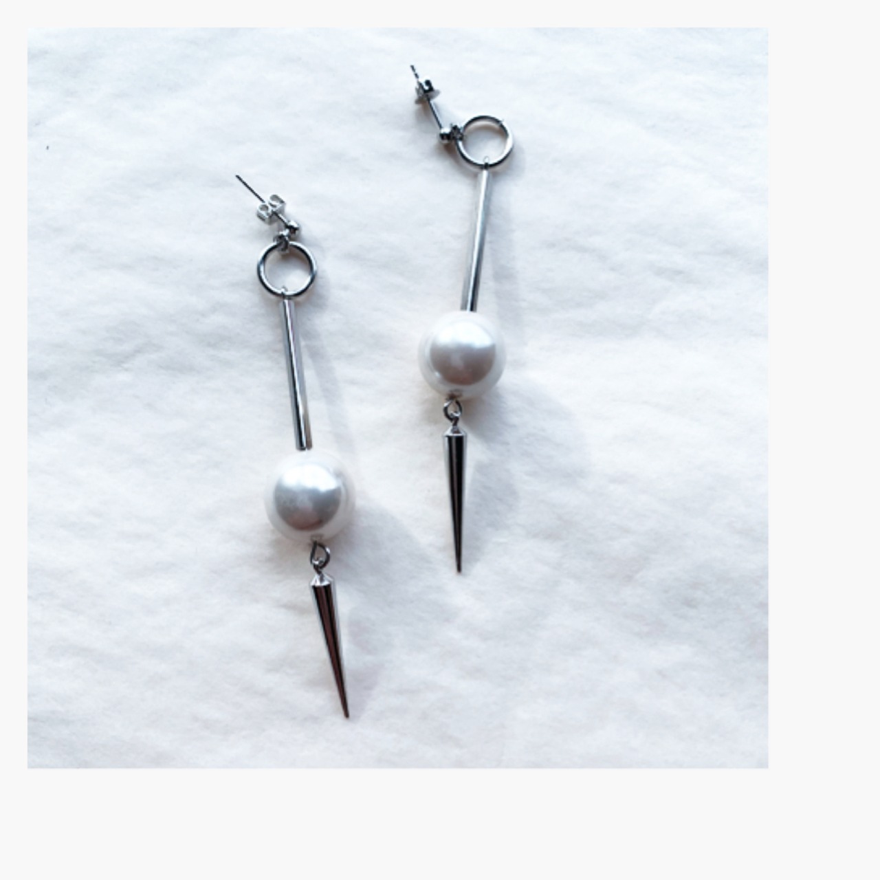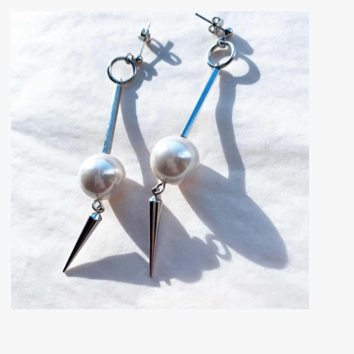 パールとスタッズで甘辛い組み合わせのピアス、イヤリングです。