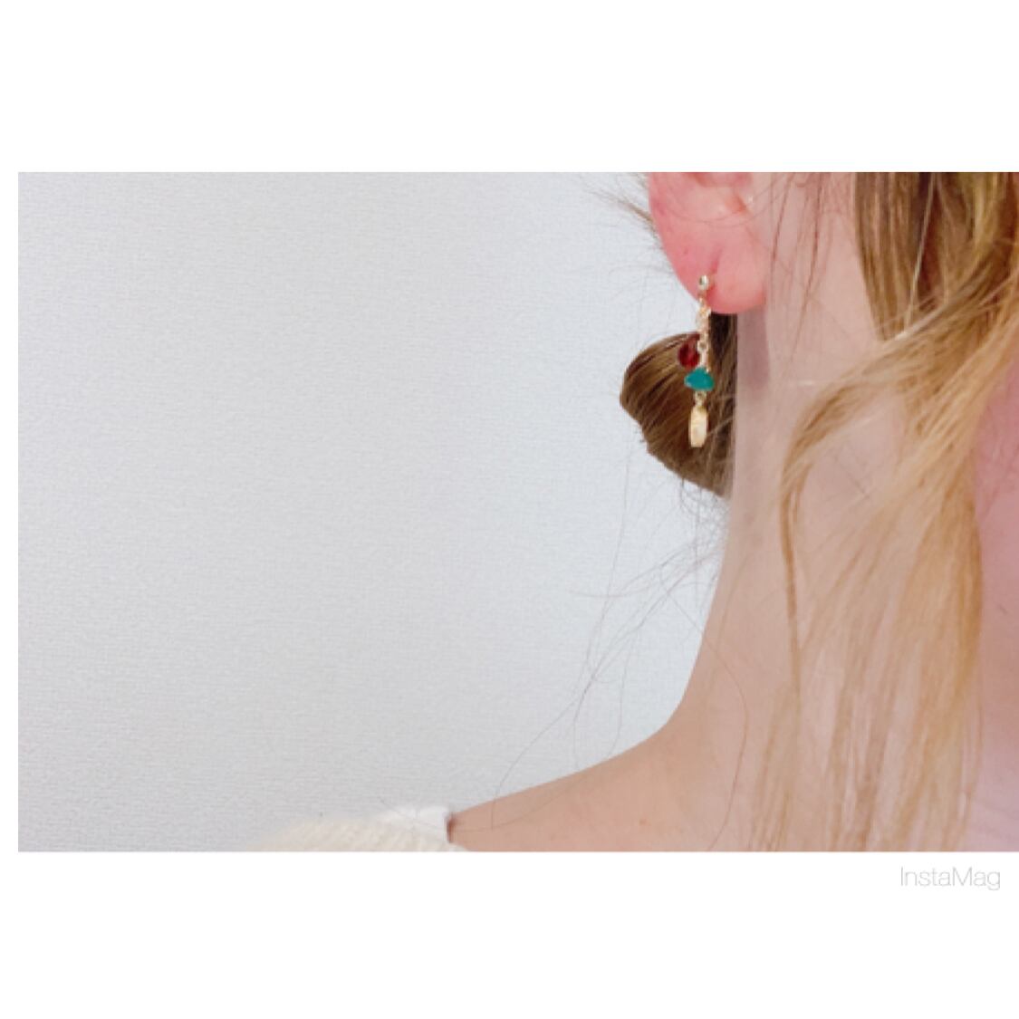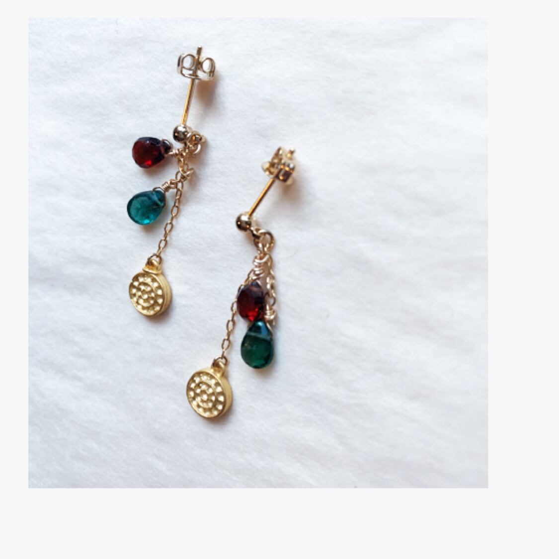 グリーンアパタイトとルビーの色合いがたまらなく可愛いピアス、イヤリングです。