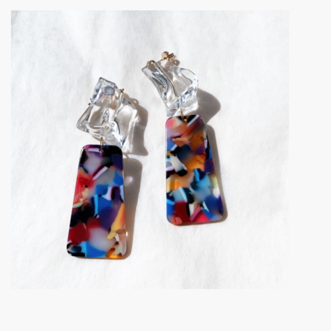 春夏らしいカラフルで存在感あるパーツをメインにしたピアス、イヤリングです!