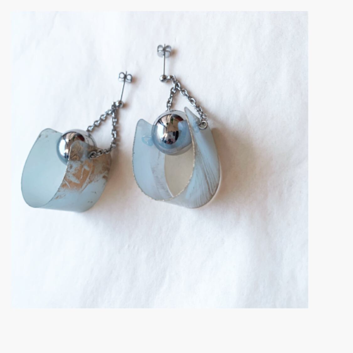 ゴールドが入った薄いブラーグリーンカラーが綺麗なシークイン素材のパーツとシルバーボールを合わせたピアス、イヤリングです。