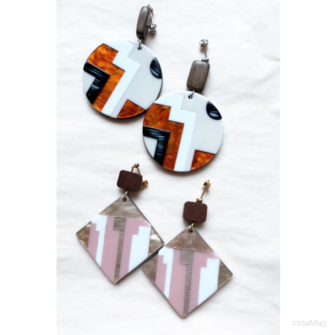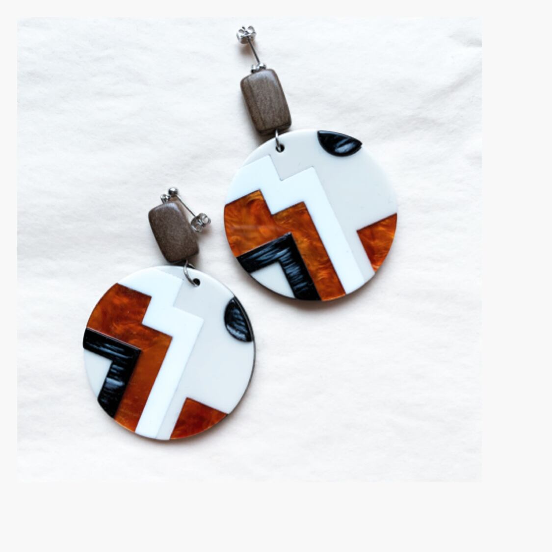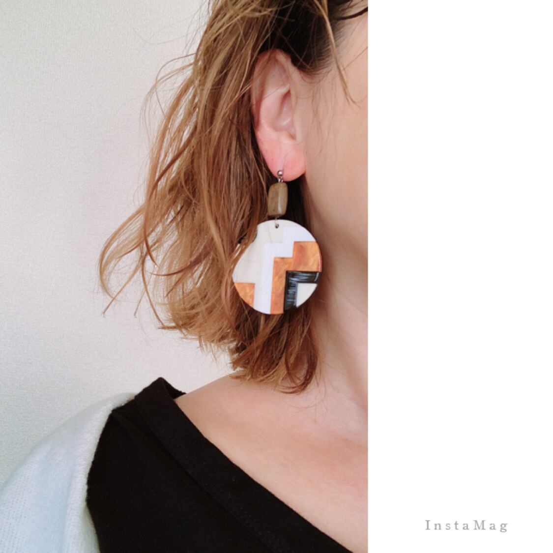 民族模様のような大きめなパーツをメインにしたピアス、イヤリング。