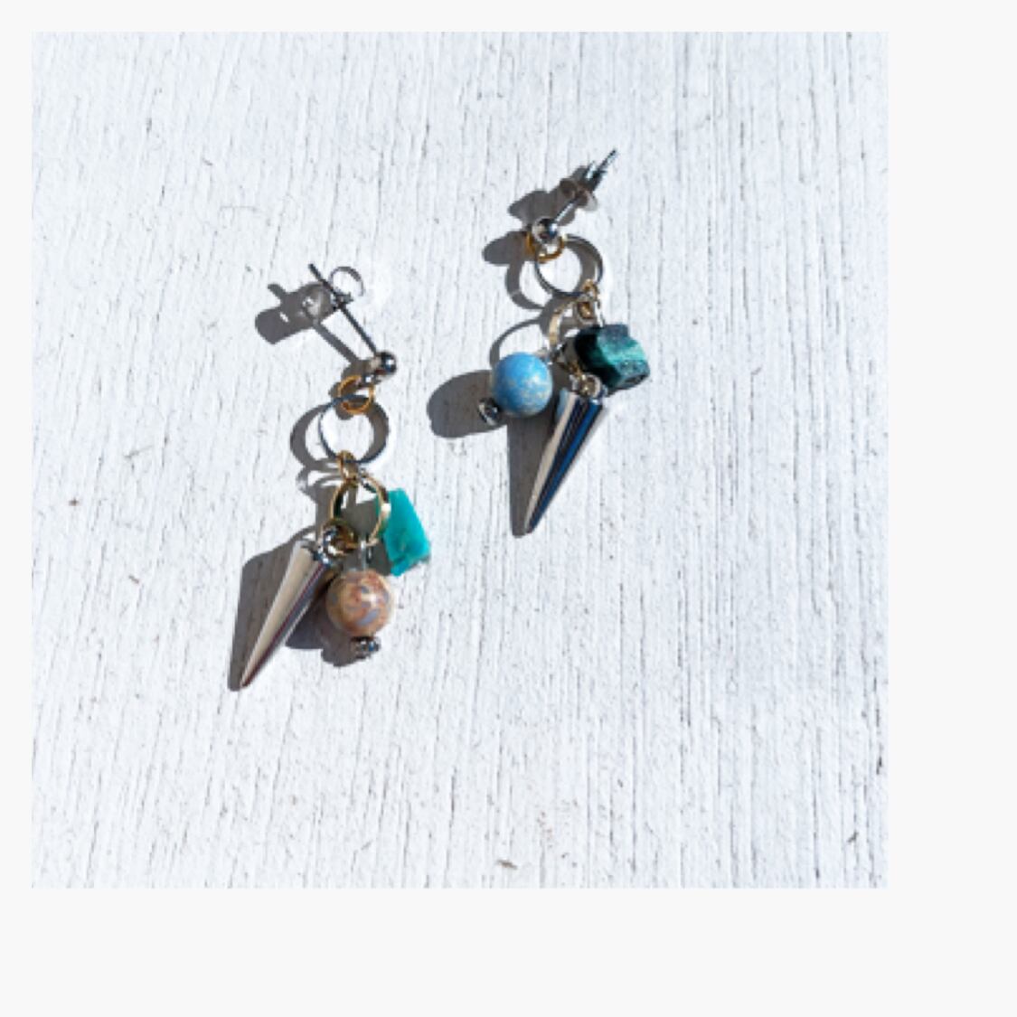 アメリカンジャスパー、ブルーオパールのそれぞれのブルーがマッチするピアス、イヤリング。