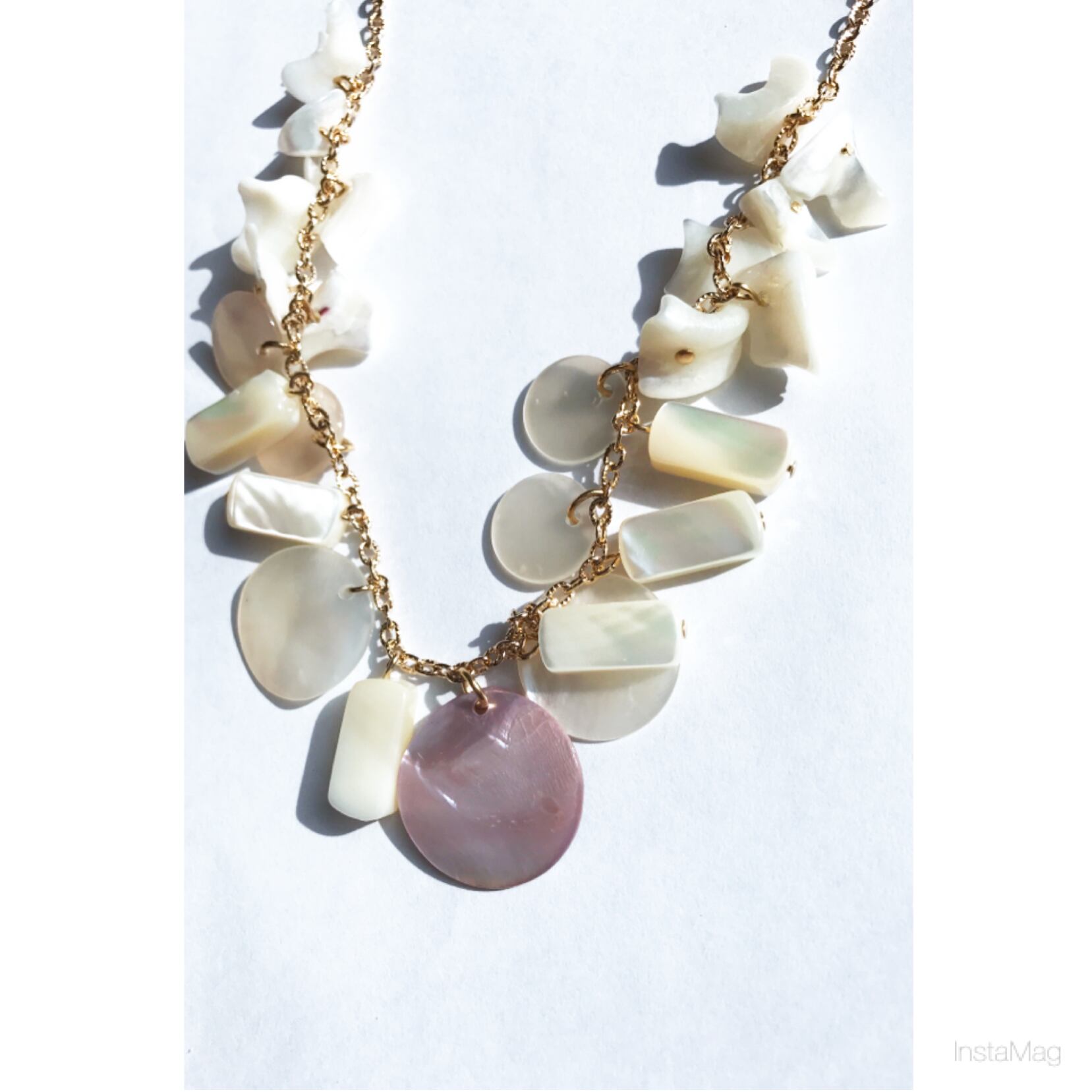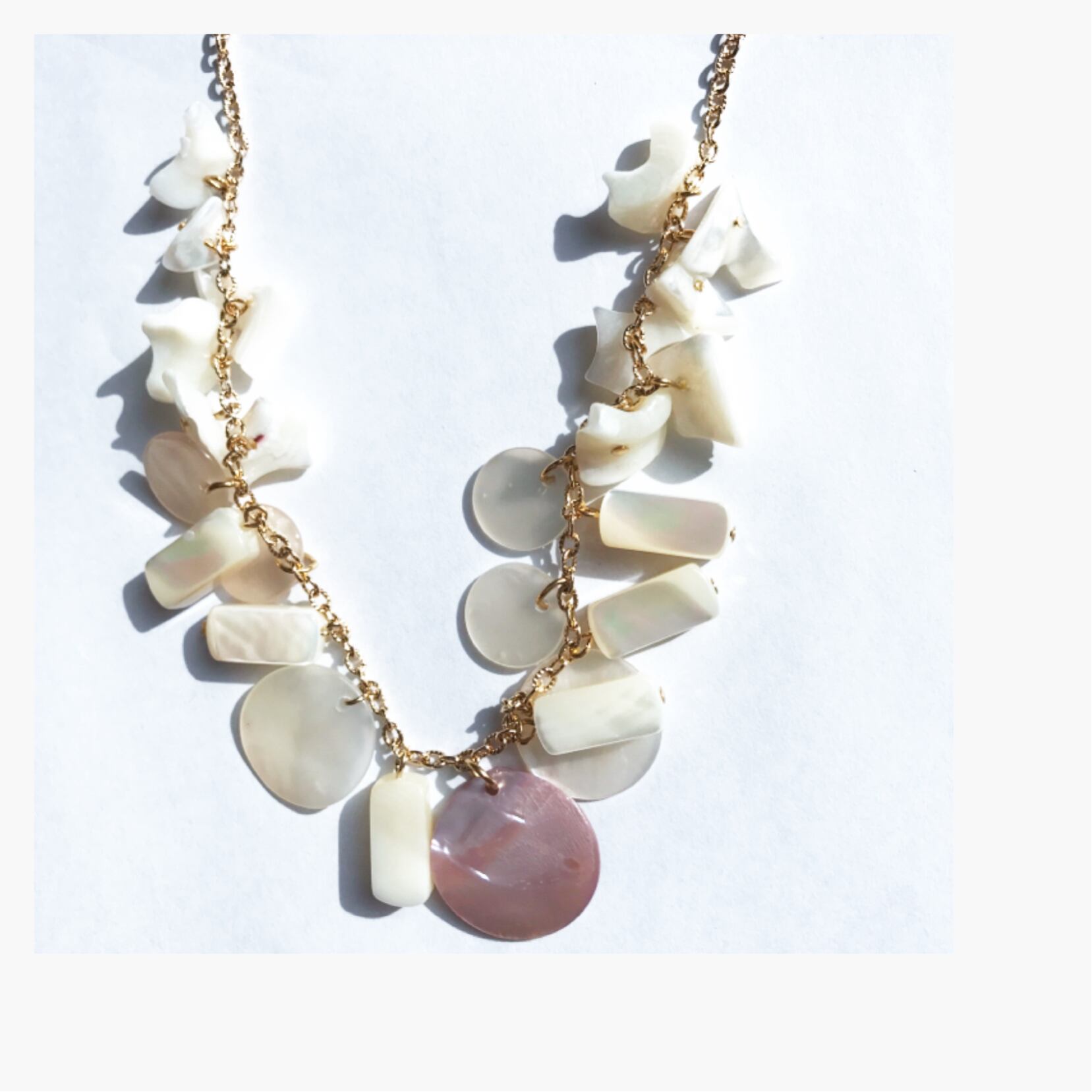 様々な形の貝を組み合わせたホワイト尽くしの贅沢なネックレスです。