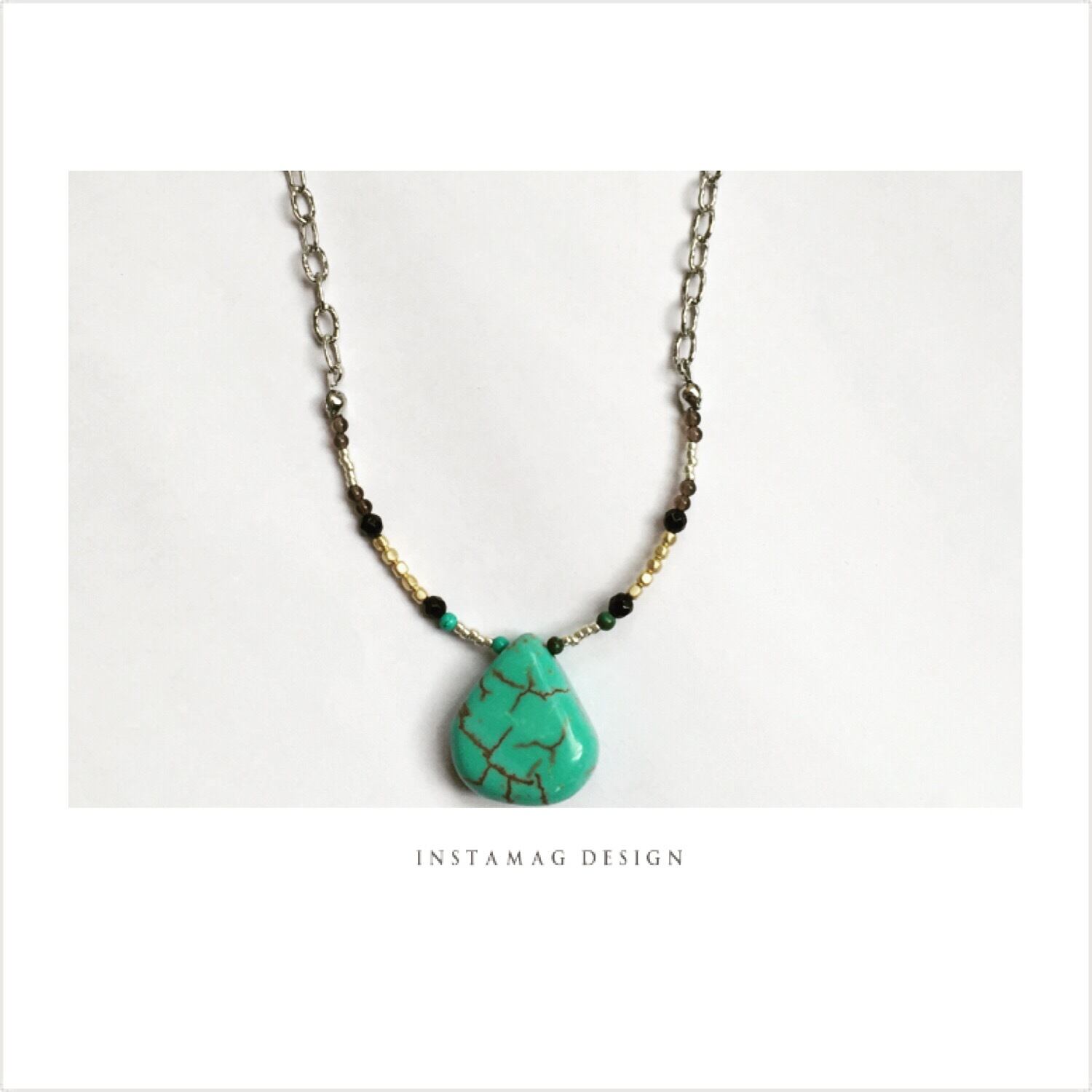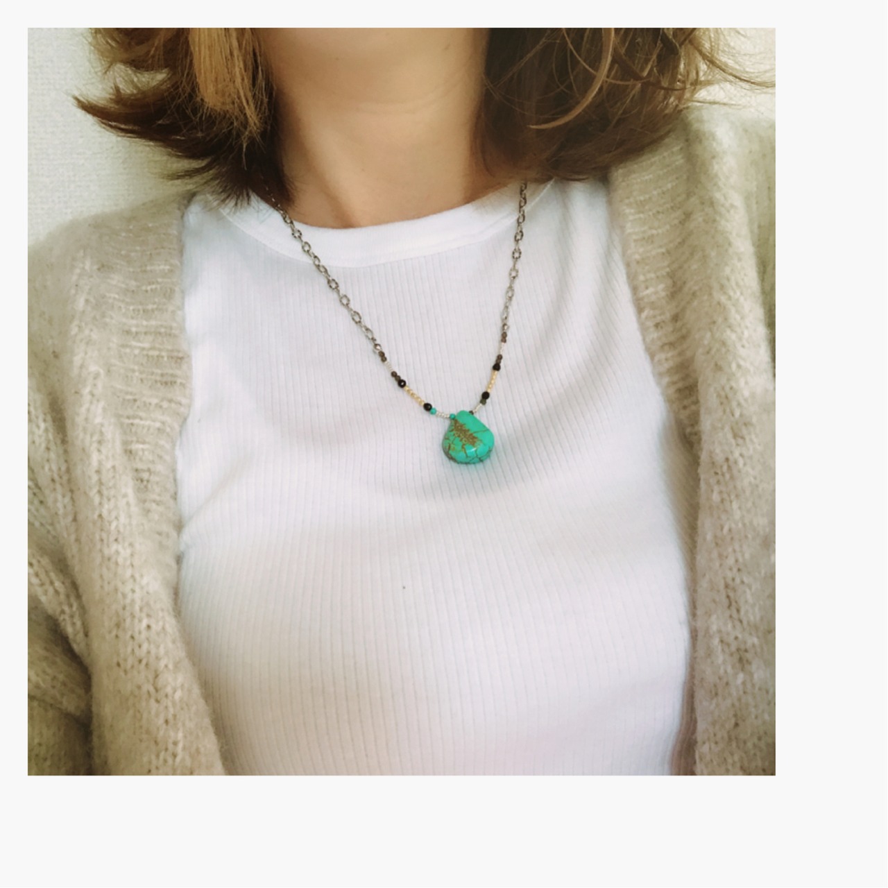 ターコイズと小さな天然石を組み合わせたボヘミアンでエキゾチックな雰囲気のネックレスです!