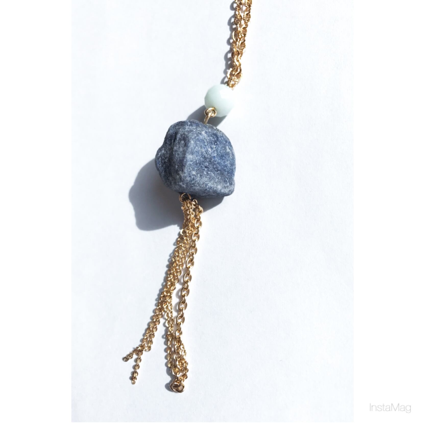 ブルークォーツの原石をメインに薄いグリーンのアマゾナイトを組み合わせたロングネックレスです。