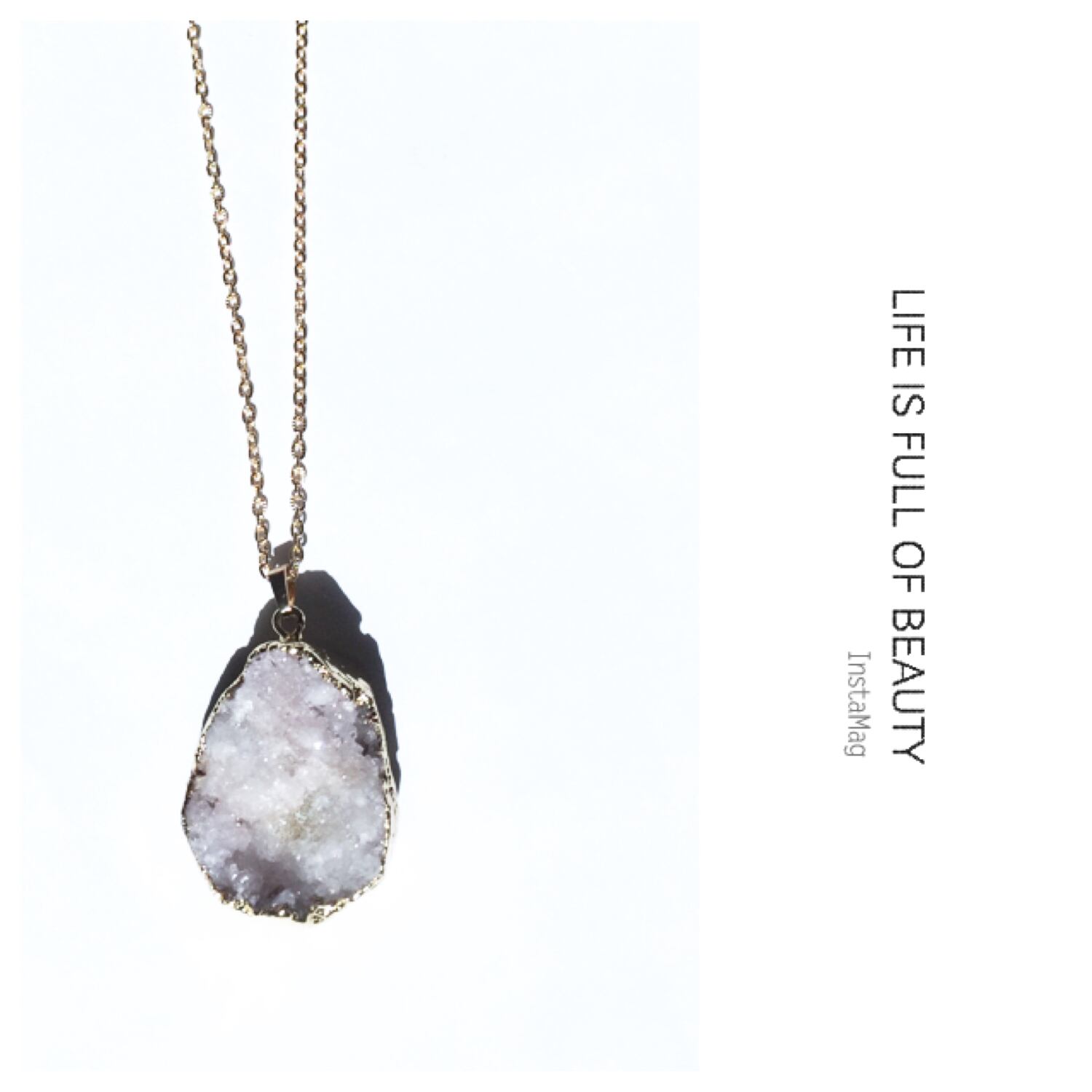 存在感ある淡いピンクパープルなお色のドゥルージーのシンプルなロングネックレスです!