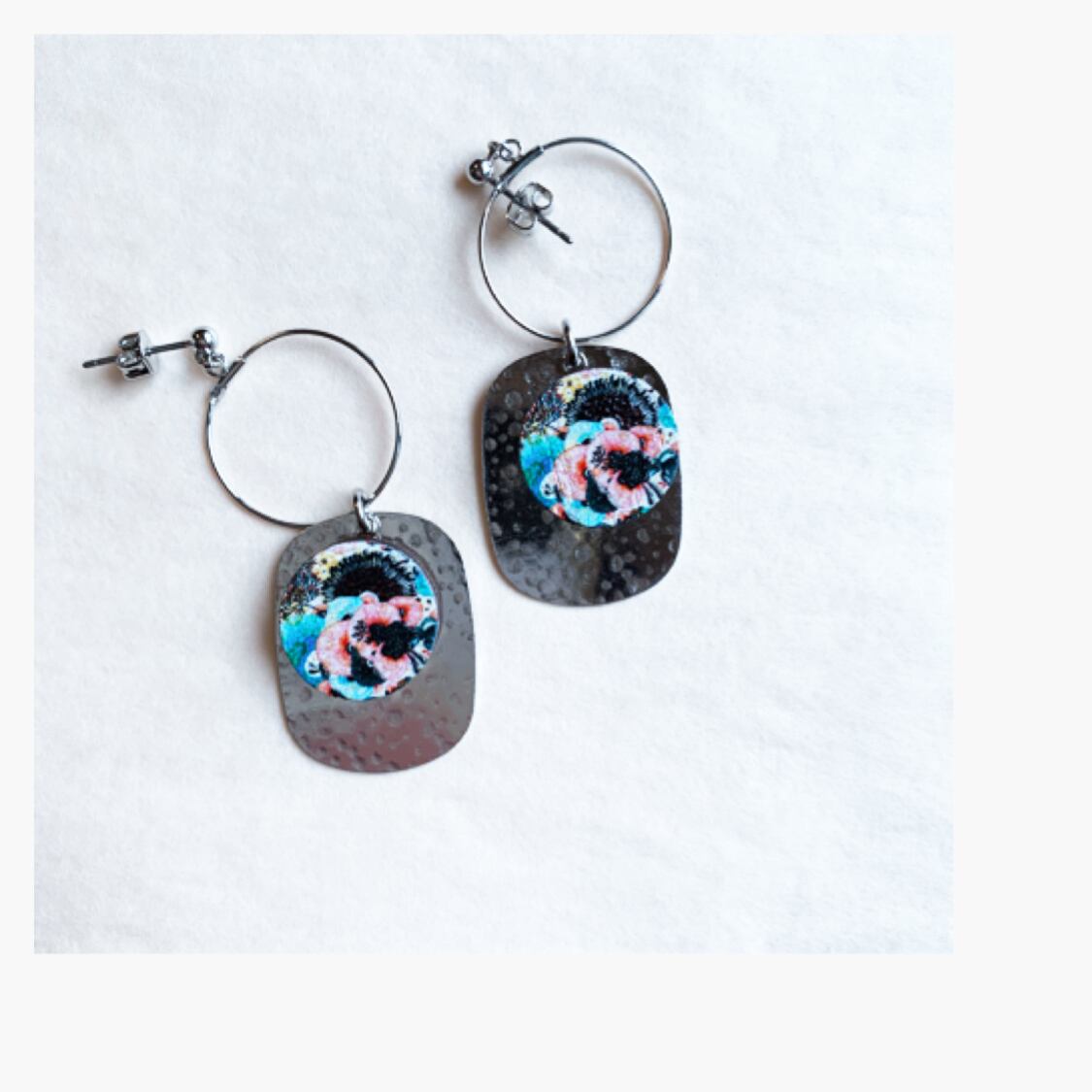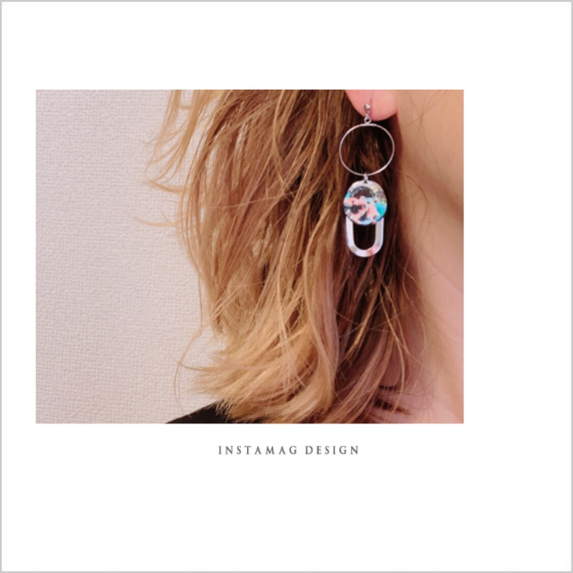綺麗な色のオリエンタル調の絵が施されているウッドパーツをシルバーで合わせたピアス、イヤリングです。