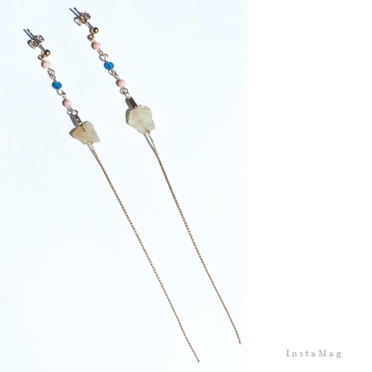 天然石とスワロフスキーを使用したボヘミアンスタイルのデザインです。