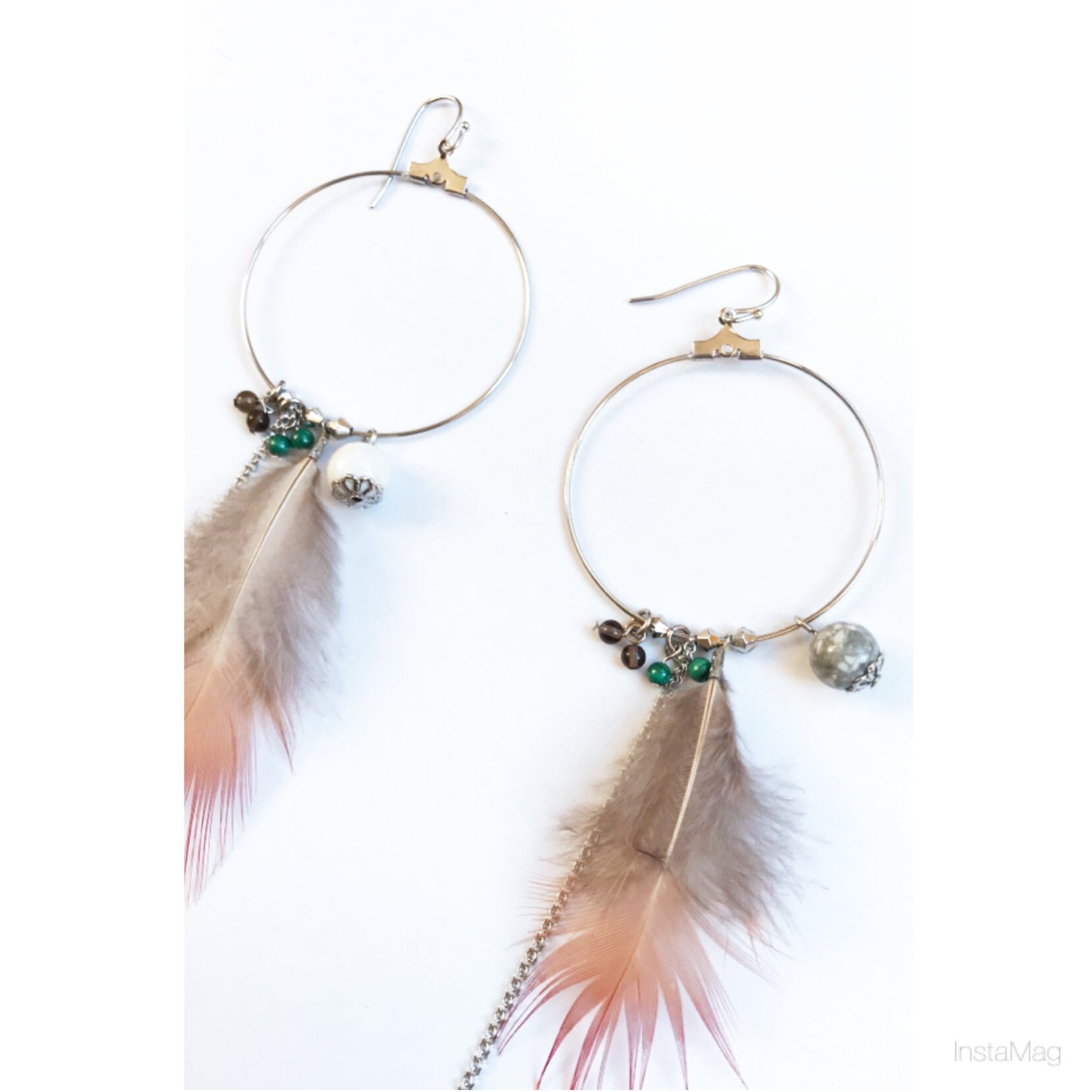 マラカイト、スモーキークォーツ、ハウライト、羽、メッキ