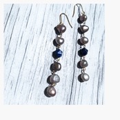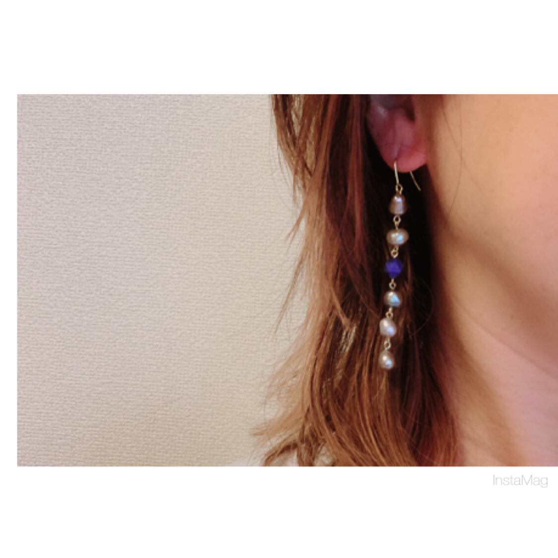 上質な淡水パールとラピスラズリの上品な組み合わせなラインピアス、イヤリングです。