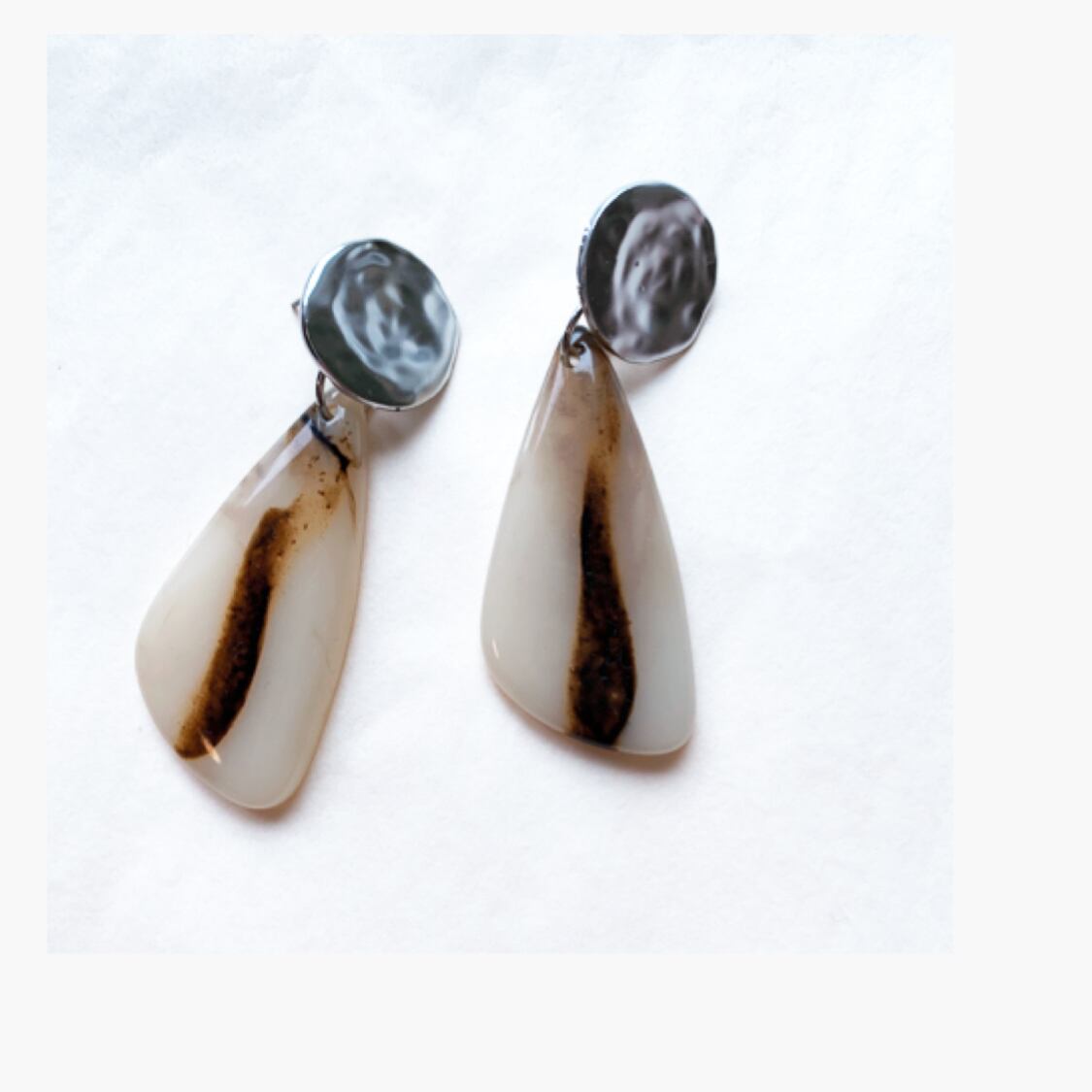 ナチュラルな色味の大振りパーツをシンプルにシルバープレートピアスと合わせたお品!