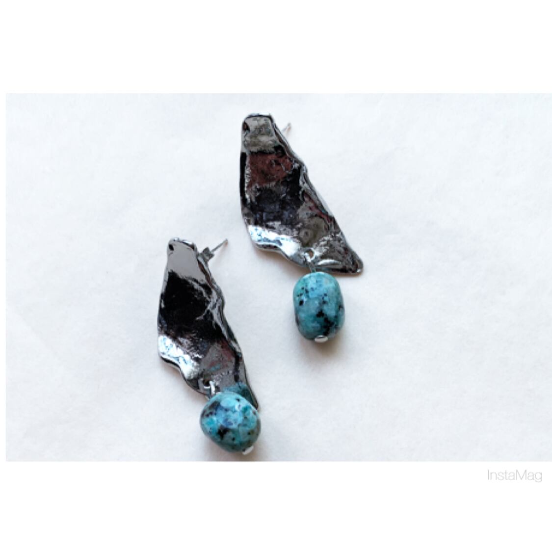 歪なシルバープレートピアスが個性を出してくれるお品。