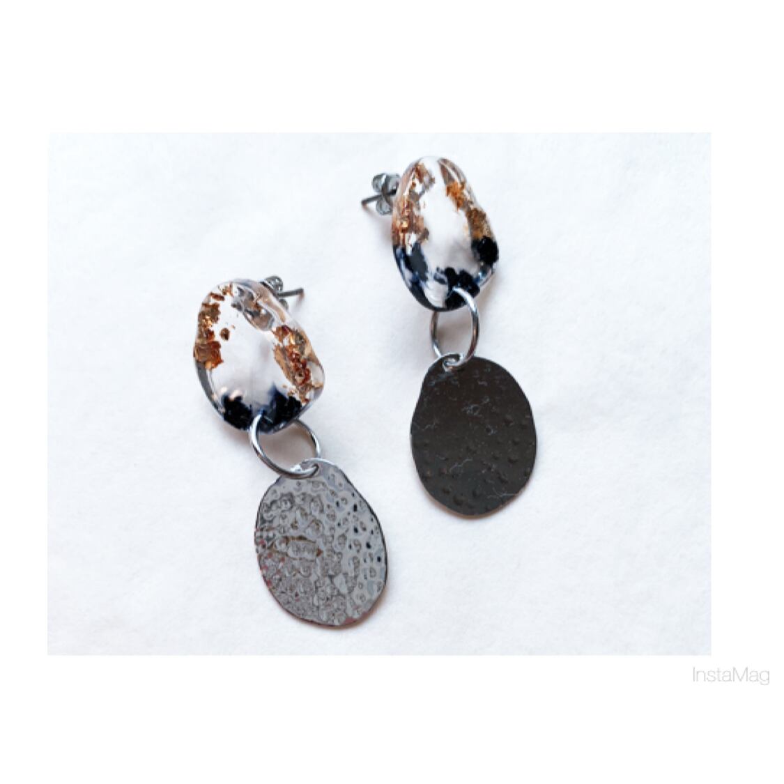 クリアにゴールドとブラックが入ってるピアスパーツにシンプルな打ちっぱなしプレートを合わせたお品です!