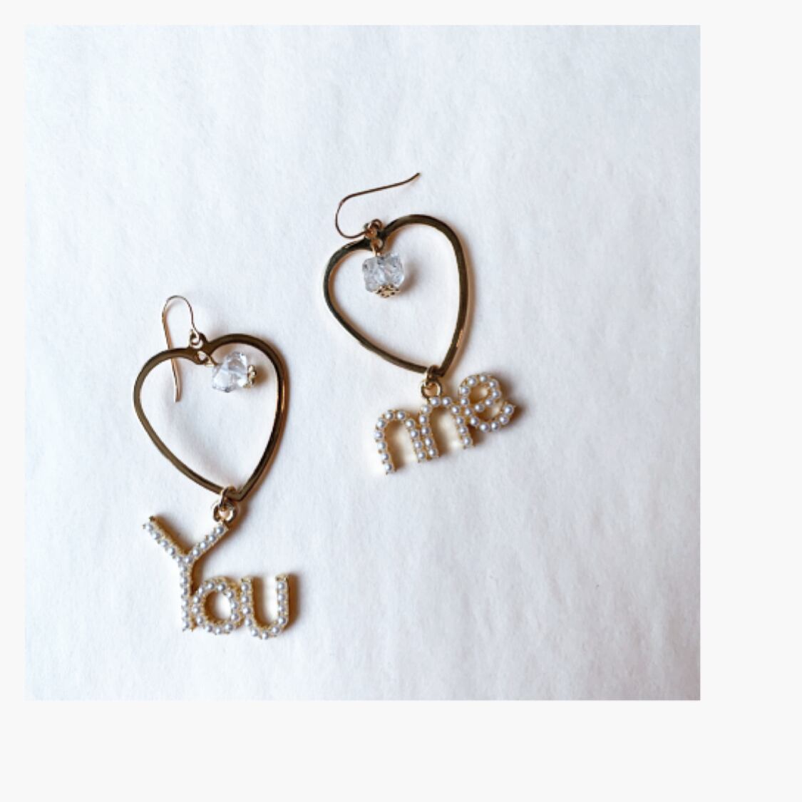 パールであしらったYOU&MEとクリスタルのピアス、イヤリング。