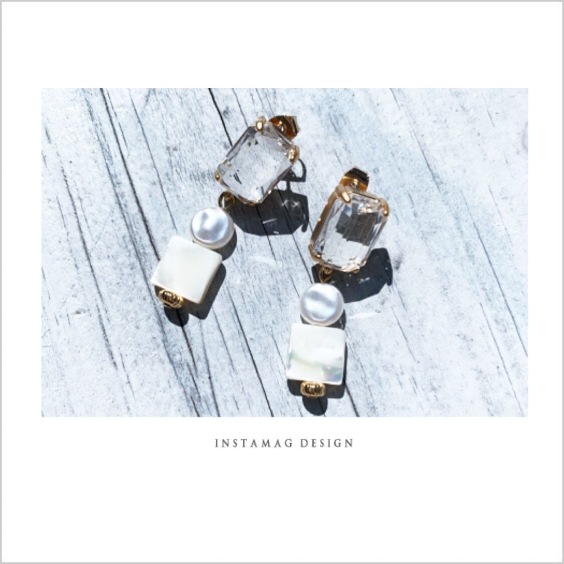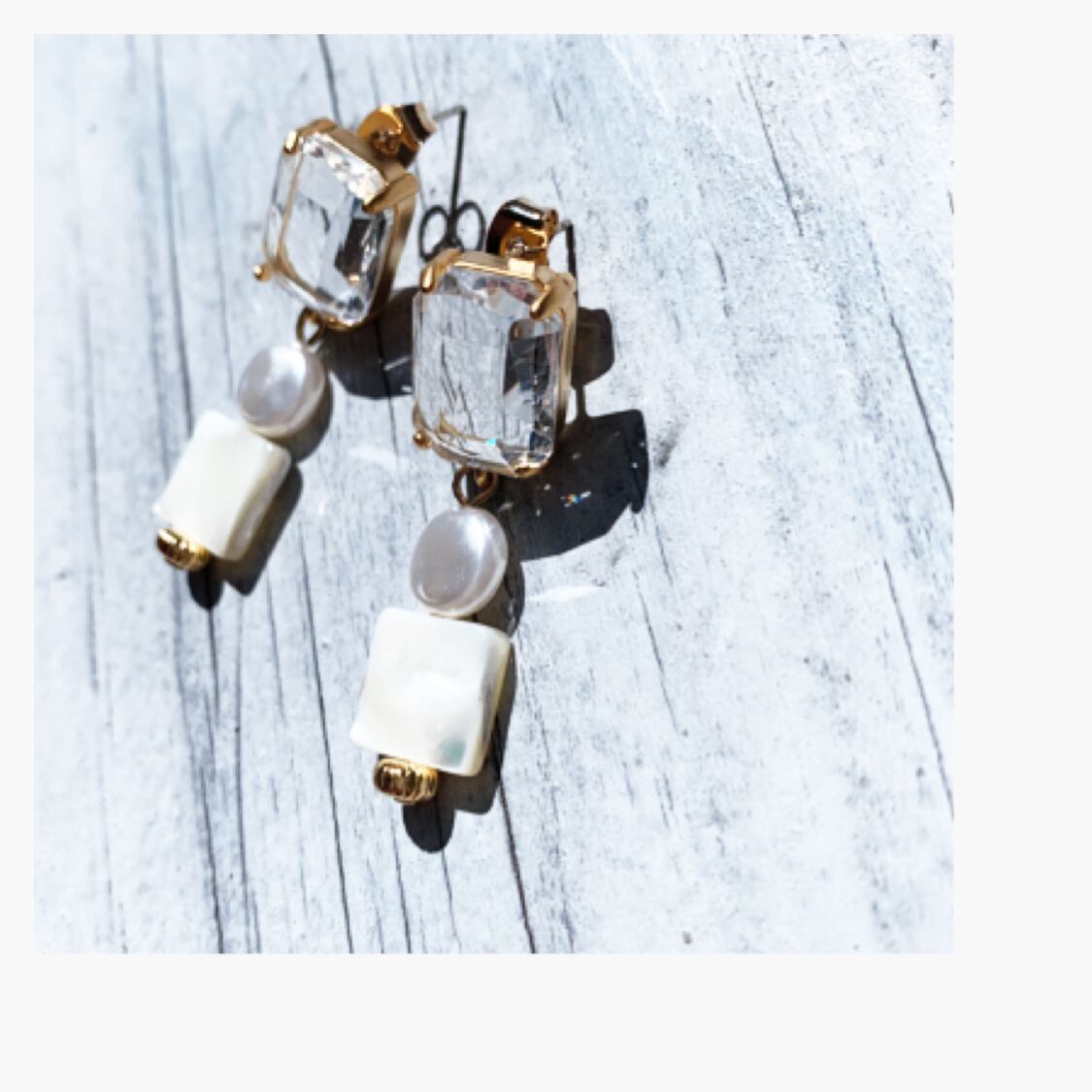 キラキラのガラス、パール、シェルの涼しげなピアスです。