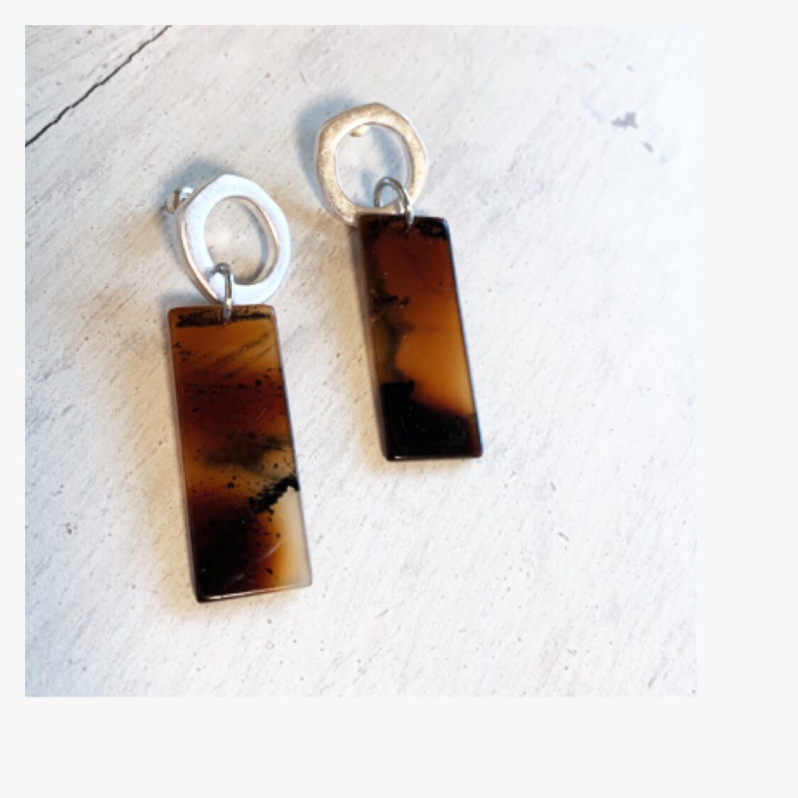 アンティークシルバーにべっ甲を合わせたシンプルなピアス、イヤリングです。