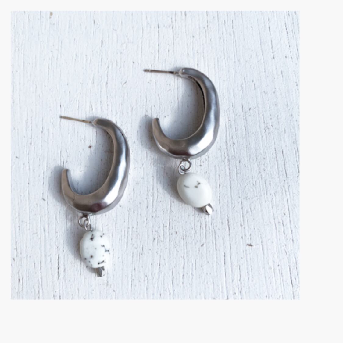 打ちっぱなしのピアスパーツにハウライトの石をぶら下げたシンプルなピアスです。