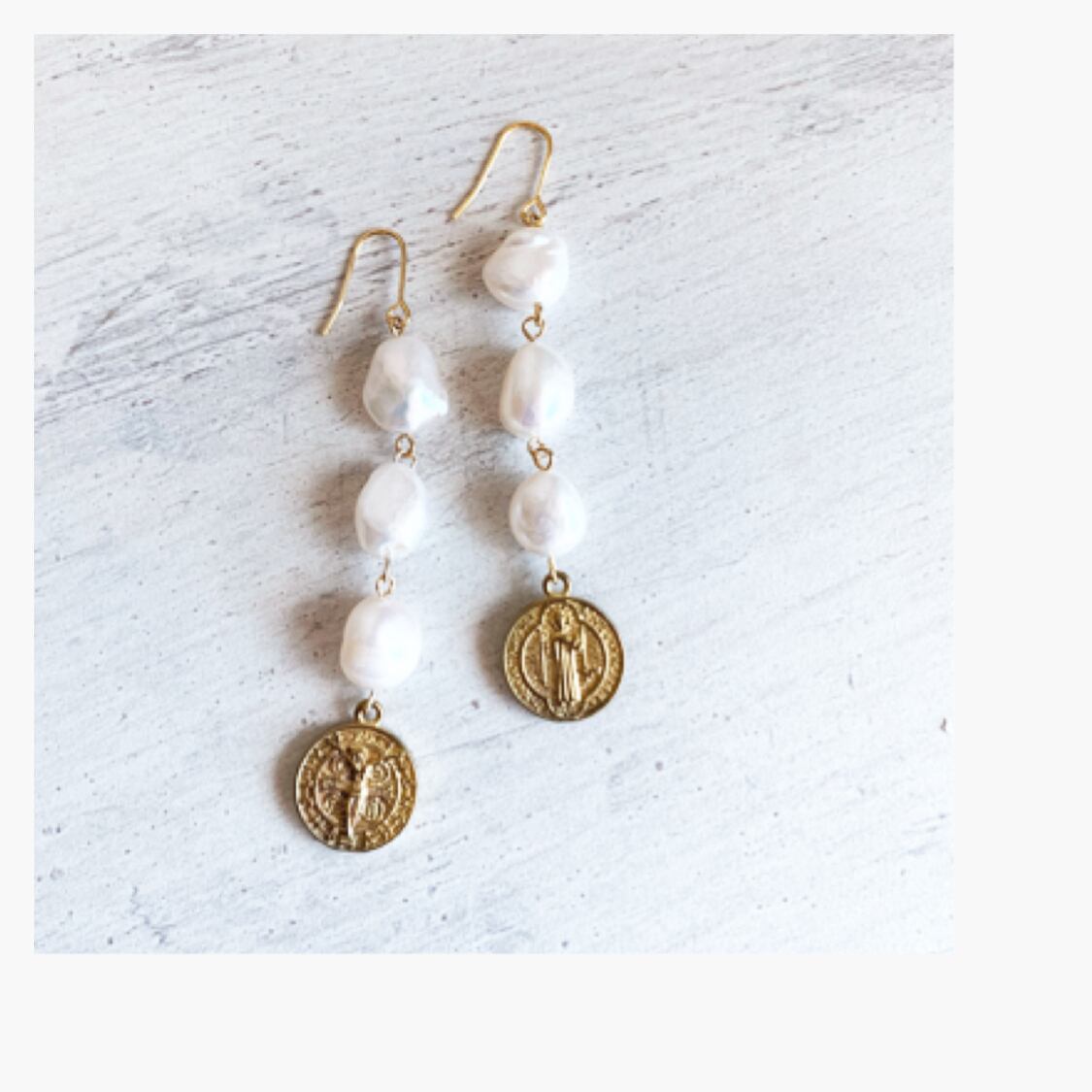 コロンとしたフォルムの淡水パールとヴィンテージのキリストコインを合わせたピアス、イヤリングです。